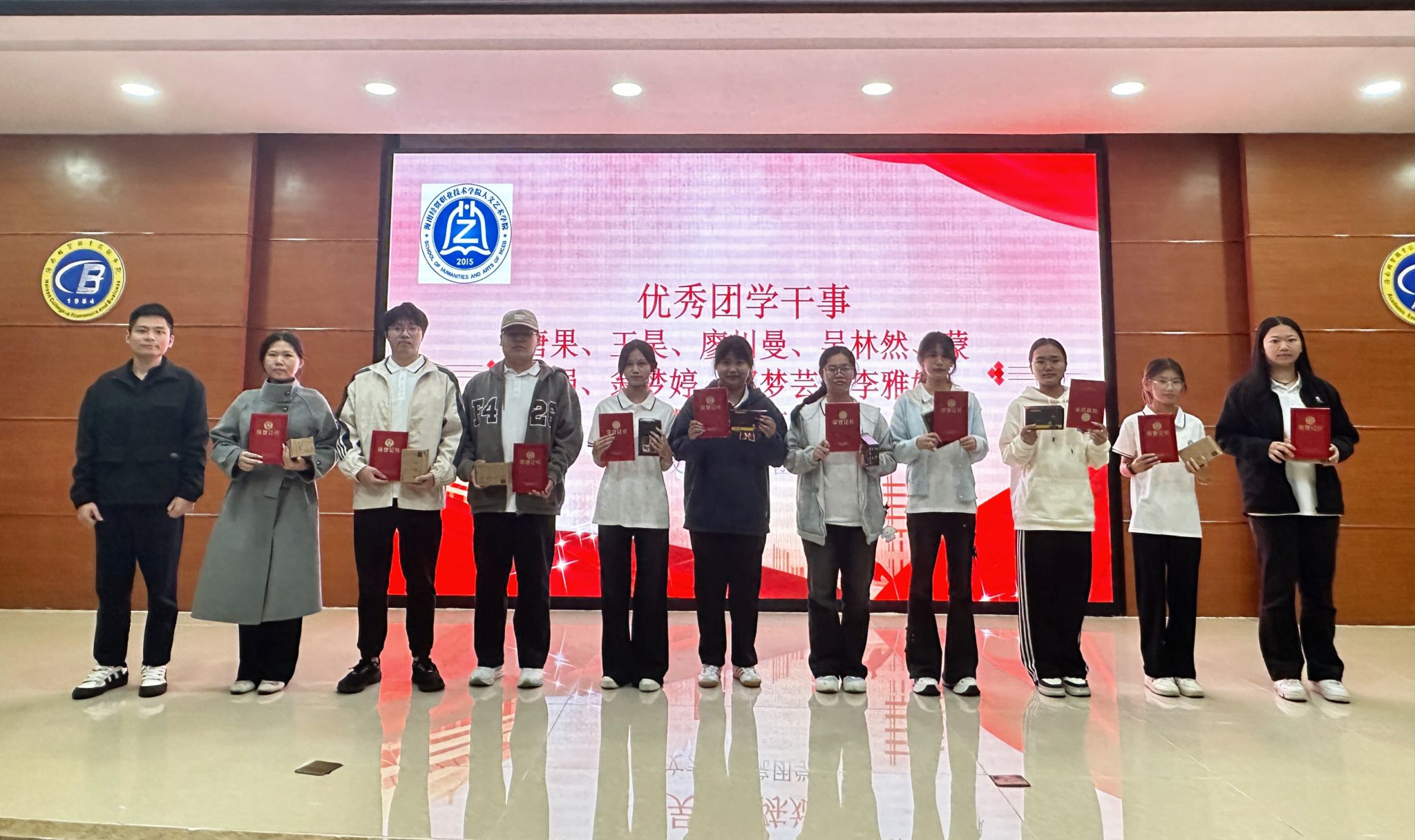 大会对 “团学标兵”“优秀干部”“优秀干事”及 “优秀部门”予以表彰。获奖代表依次登台领奖,他们以实干践行初心,以担当诠释使命,用实际行动为全院团学成员树立了可学可做、可追可及的先进榜样。沉甸甸的荣誉证书,既是对获奖者辛勤付出的高度肯定,更是对全院团学人踔厉奋发、勇毅前行的有力激励。