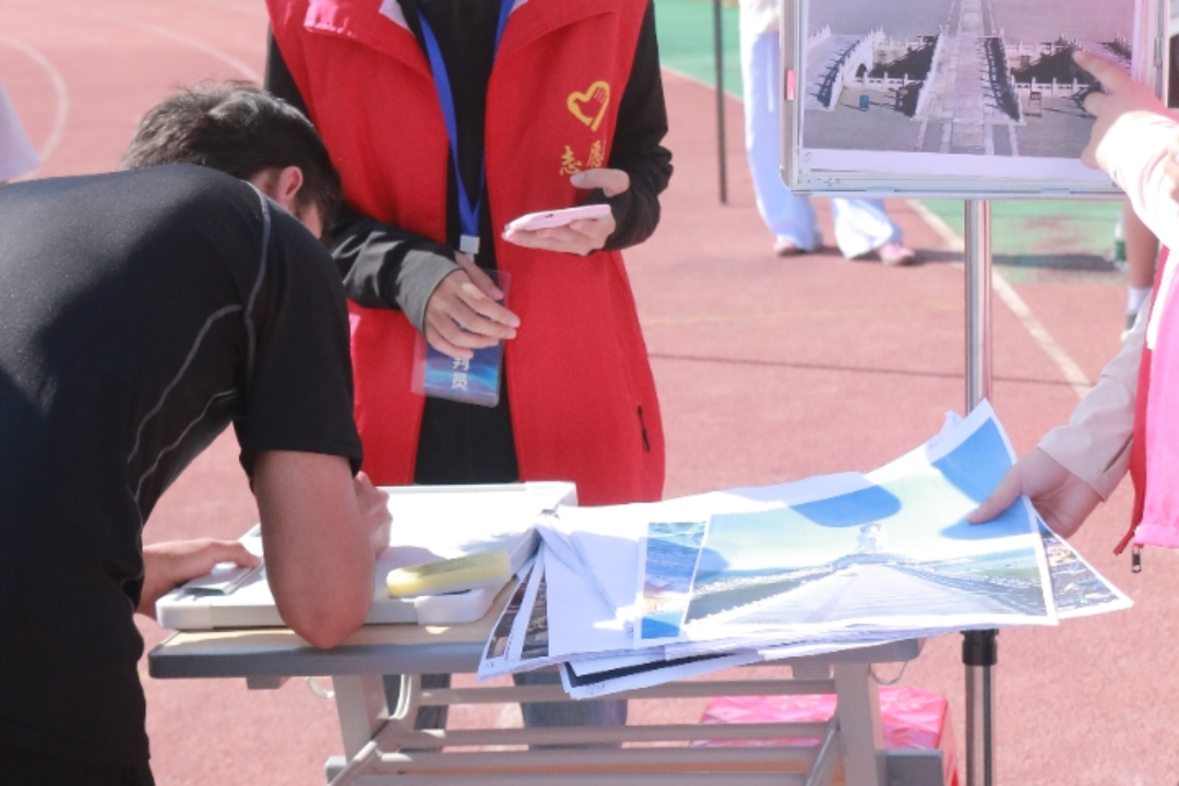 国际教育学院、乌拉尔学院设置了“旅游景点识别接力赛”项目,聚焦“导游服务”与“景点研学”两大核心模块,将传统课堂教学转化为沉浸式实践活动,吸引了中外学生的热情参与。随着比赛开始的信号发出,参赛队员们冲向旅游景点摆放区。在摆放区,挂板上整齐排列着世界各地著名景点的图片,队员们需从中随意取下一张,随后带着图片全力奔跑至终点处,迅速在白板上写下图片中景点所在的国家、城市及景点名称。队员们需接力完成比赛,正确填写全部信息,才能获得相应分数。