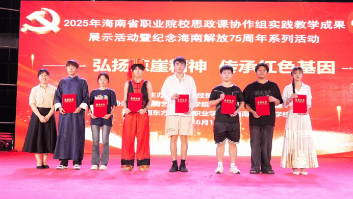6月19日,2025年海南省职业院校思政课协作组实践教学成果展示活动暨纪念海南解放75周年系列活动之大型情景剧展演在海南经贸职业技术学院举行。省教育厅职业教育与成人教育处、思政处、高等教育处相关负责人,海南经贸职业技术学院、海南艺术职业学院、海口旅游职业学院、海南东方新丝路职业学院、海南省商业学校相关负责人出席活动。