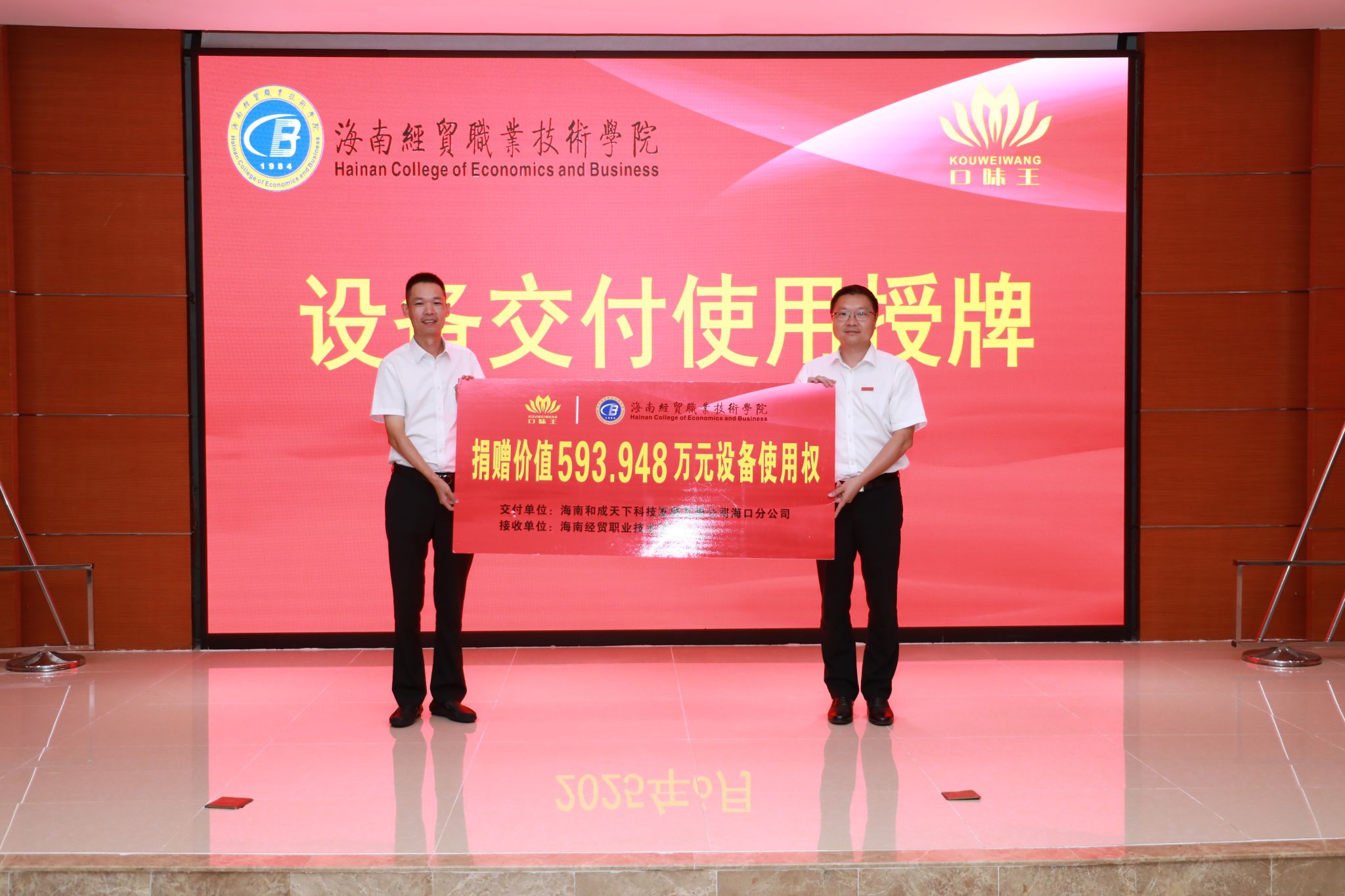 签约仪式上,校企双方正式签署了“和成天下设备精英班”合作培养协议。为支持学校教育教学和学生实践,海南和成天下科技发展有限公司向学校捐赠了价值近600万元的生产培训设备。这些先进设备将为学生提供更加优质的学习和实践平台,有效提升教学质量。此外,校企双方还互授了“海南经贸职业技术学院实习就业基地”和“和成天下人才培养基地”牌匾,进一步明确了双方的合作定位和目标。