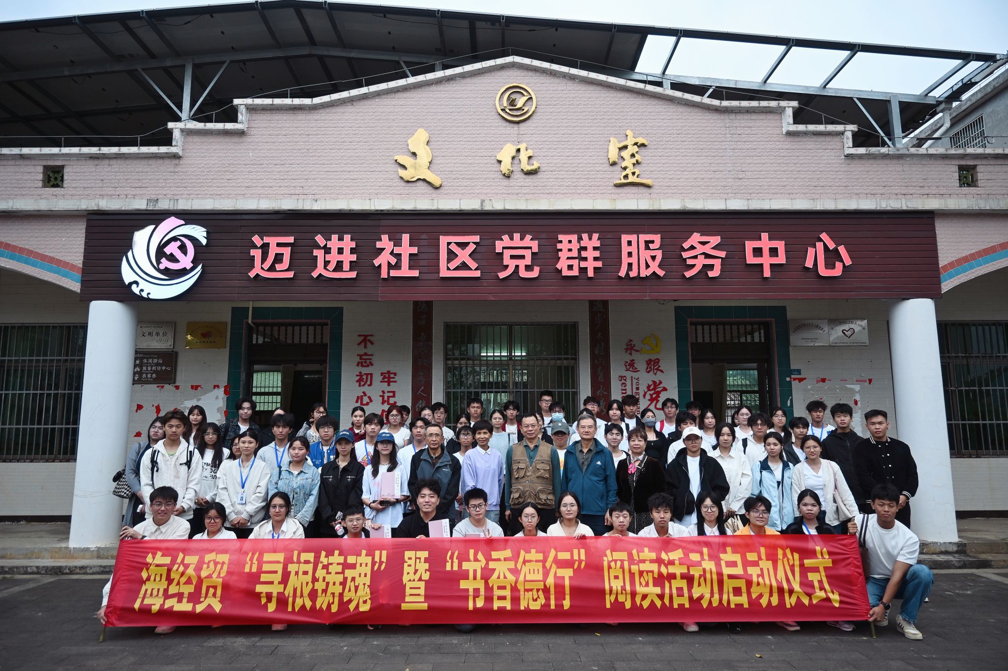 10月28日,海南经贸职业技术学院关工委联合团委、图书馆及各二级学院,在学校与海口市迈进社区共建的“中华优秀传统文化教育传承基地”迈德村,举办2025年“寻根铸魂”暨“书香德行”阅读活动启动仪式。