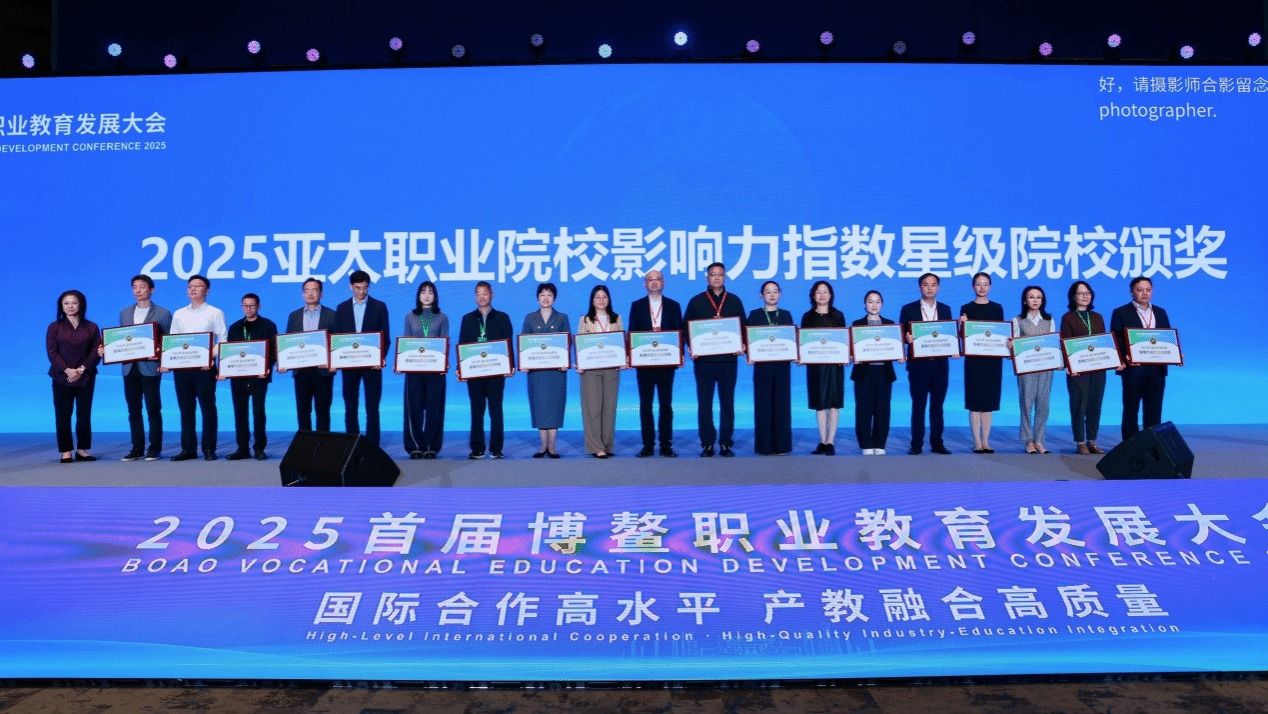 会上,海南经贸职业技术学院荣获“2025年亚太职业院校影响力指数星级院校”“职业教育对外交流与合作典型院校”“2025博鳌职业教育大会卓越组织单位”等荣誉;崔昌华荣获“职业教育对外交流与合作突出贡献奖”;《“引进来”与“走出去”协同赋能——海南经贸职业技术学院乌拉尔学院“本土化—国际化”双循环创新实践》入选2025职业教育国际合作与传播案例。