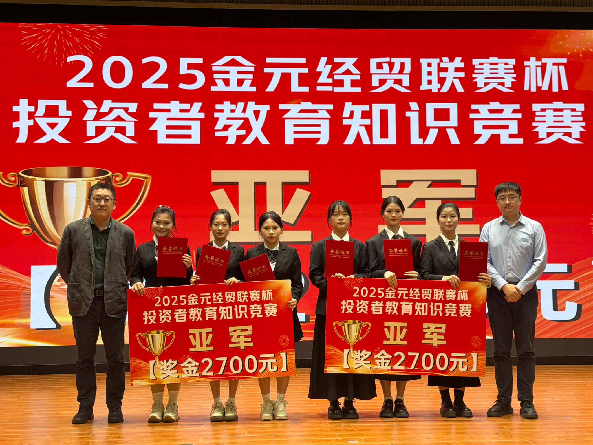 2025年12月22日,在中国证券业协会、海南证监局的指导下,由海南经贸职业技术学院与金元证券联合主办的第四届“金元证券杯”投资者教育知识竞赛总决赛在学校图书馆报告厅举行。经过激烈角逐,海经贸学子荣获两个冠军、一个亚军及一个优秀奖。