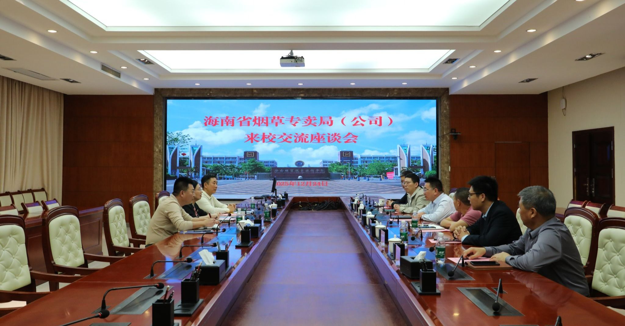 2025年12月24日,海南省烟草专卖局营销中心主任陈敏一行3人来到海南经贸职业技术学院,交流校企合作事宜。学校党委副书记、校长崔昌华出席座谈会。