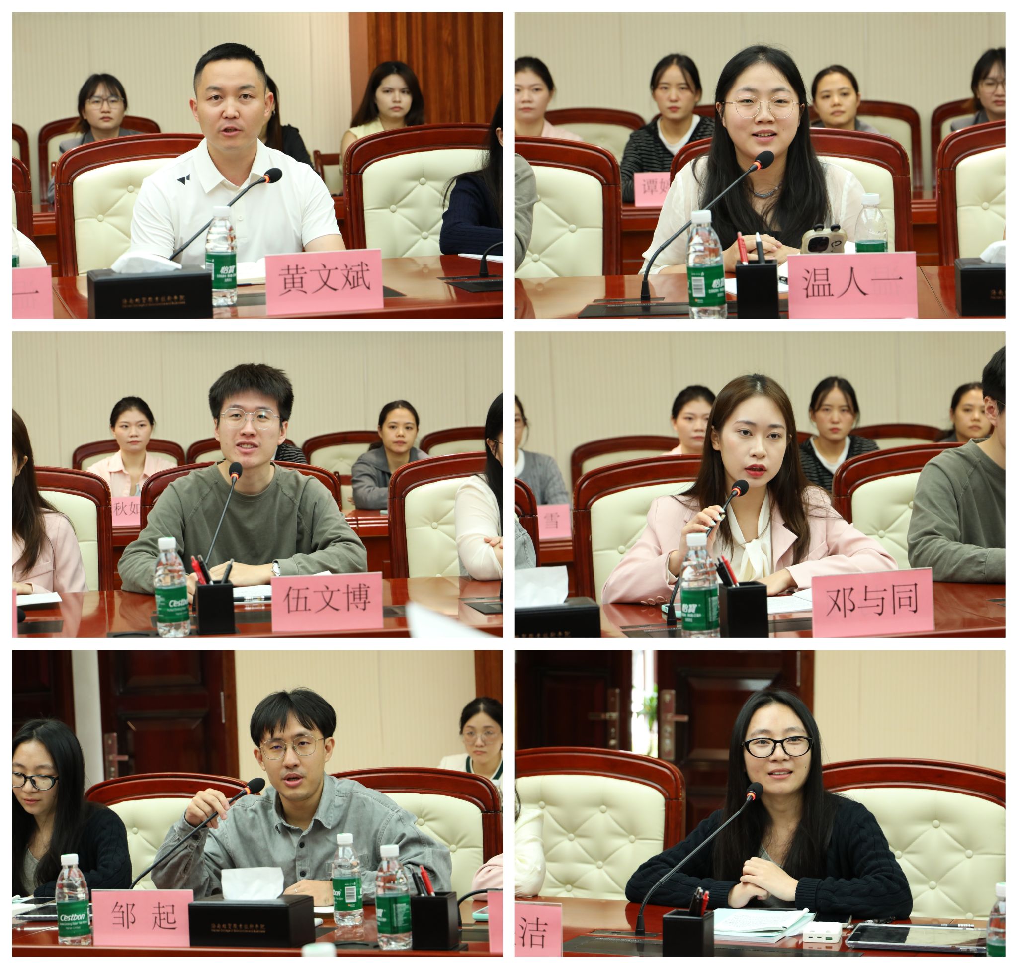 交流环节氛围热烈真挚,新入职教师代表黄文斌、温人一、伍文博、邓与同、邹起和王煜洁依次发言,结合自身专业背景,围绕对学校办学理念的认同、对职业教育使命的理解、未来工作规划及个人成长目标等方面,分享了入职感悟与奋进决心。他们纷纷表示,将尽快完成角色转换,以饱满的热情投入工作岗位,将个人成长融入学校高质量发展与海南自贸港建设大局,用青春与实干为职业教育事业添砖加瓦。