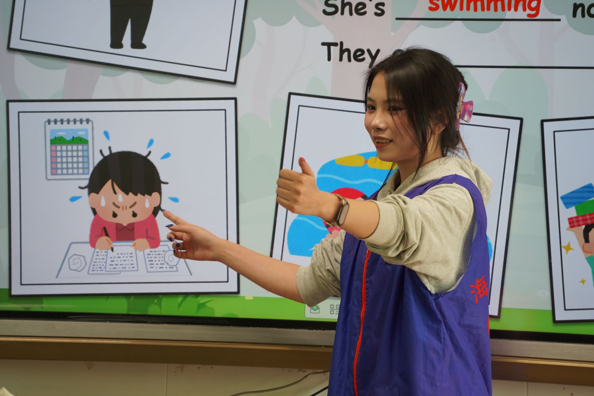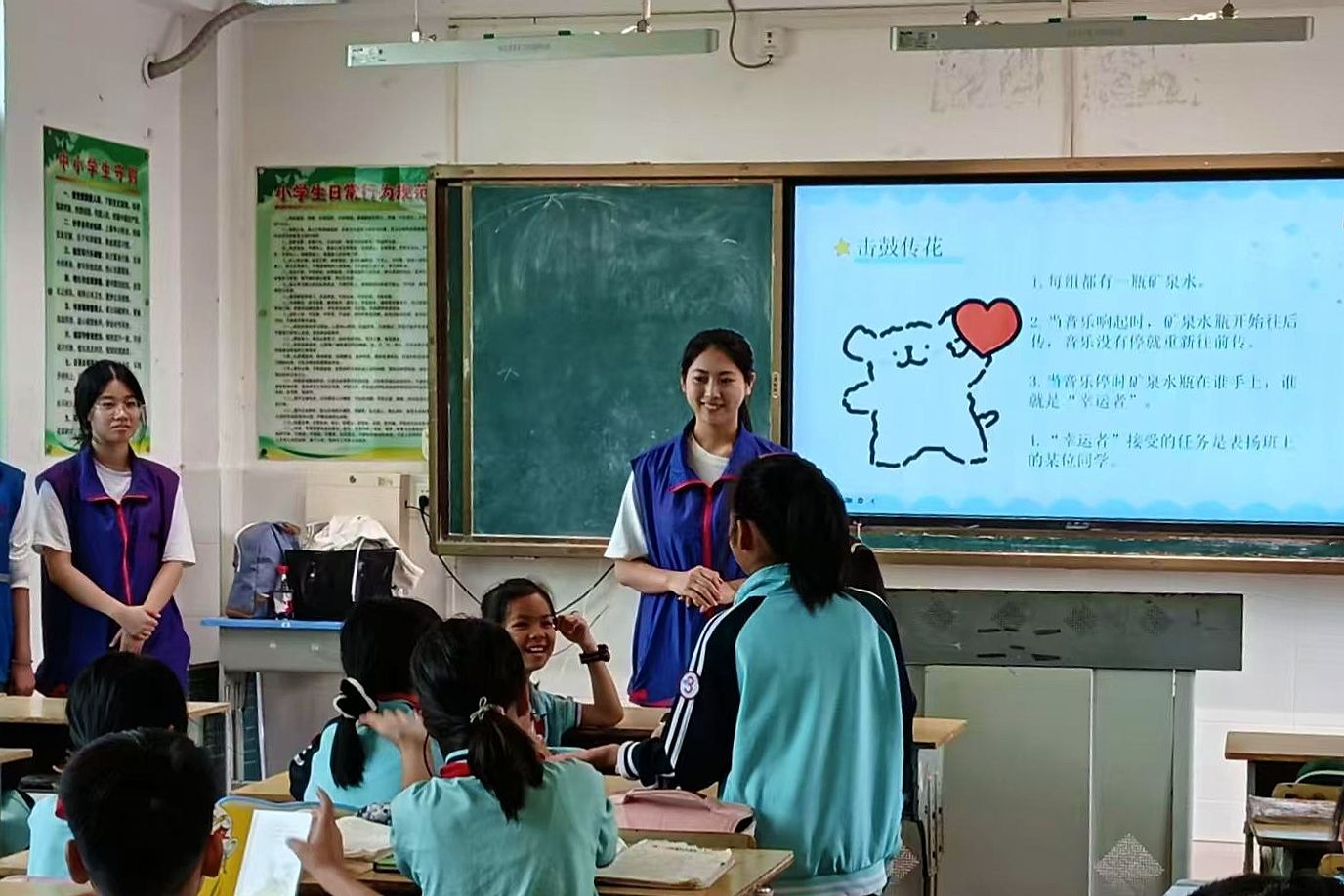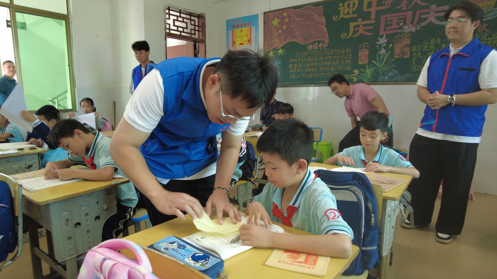 志愿者分别就英语课堂、书读课堂、心理课堂和美术课堂展开支教活动。英语小组的志愿者们以风趣幽默的语言进行授课,将课堂化身成为了欢乐的知识海洋。书读小组进行了剪纸实践教学,一幅幅图案精美的剪纸和层次鲜明的“立体字”浮现出来,孩子们纷纷学习效仿。心理小组的“心理导师们”通过一场场课堂小游戏及趣味问答,带领孩子们敞开心扉,成为自己情绪的主人。美术小组的志愿者们用一支支色彩缤纷的画笔,带领孩子们描绘出了独属他们的童真世界。