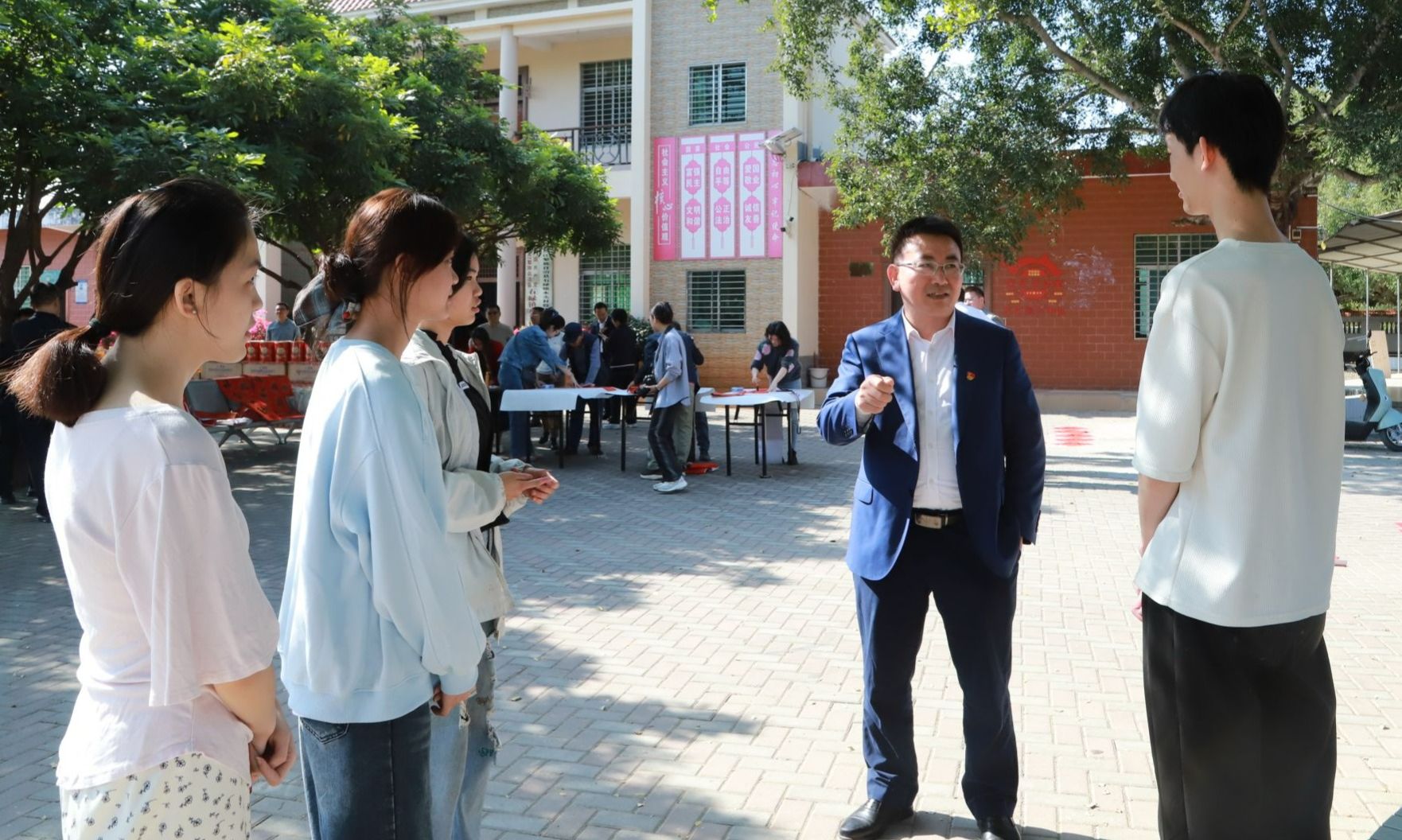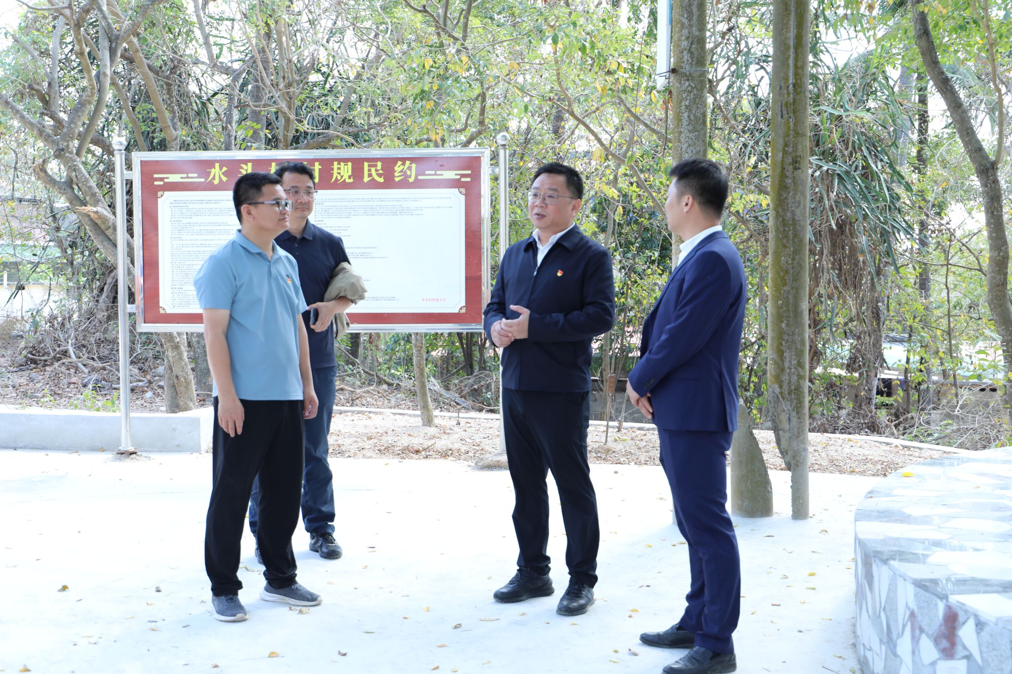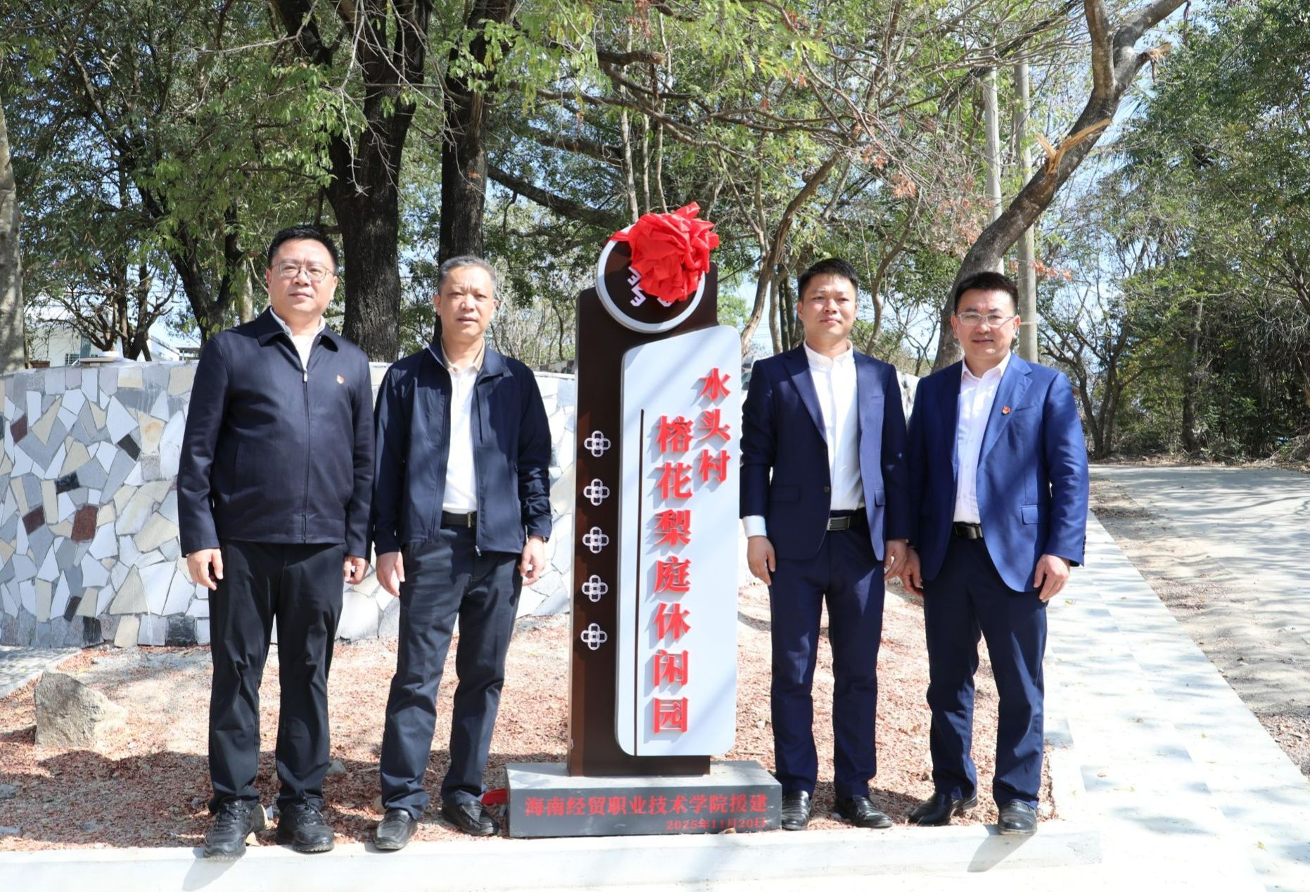 在喜庆的节日氛围中,王华、崔昌华与赵恒江、吴多智共同为水头村榕花梨庭休闲园揭牌。该园占地约900平方米,由学校投入帮扶资金建设而成。作为一项精准对接村民需求的民生工程,休闲园依托村内自然生态,配备了休闲座椅、便民步道等设施,旨在丰富村民文化生活,让村民在家门口就能享受舒适的休闲环境。它的落成,标志着水头村人居环境与民生服务水平的进一步提升。