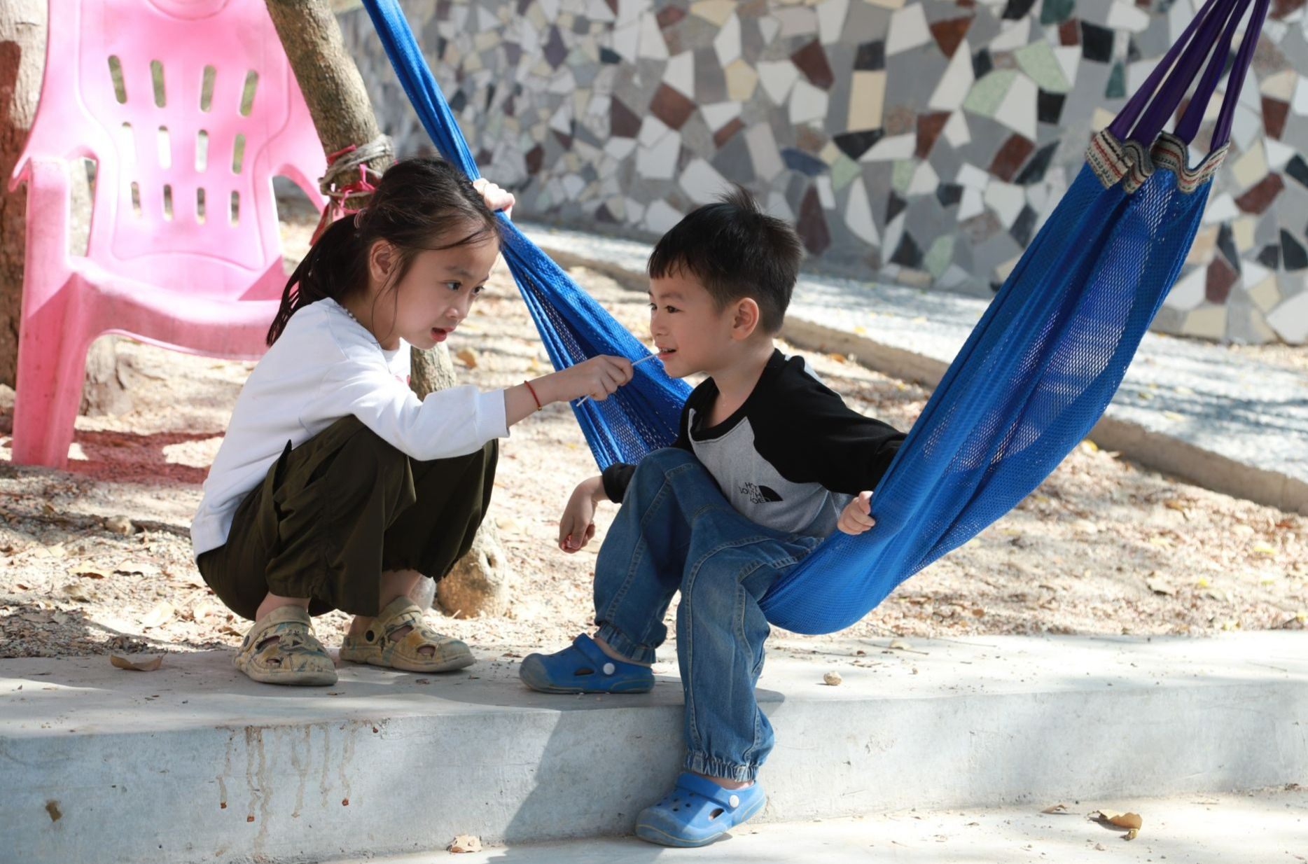 水头村的孩子们在休闲园里嬉戏玩耍