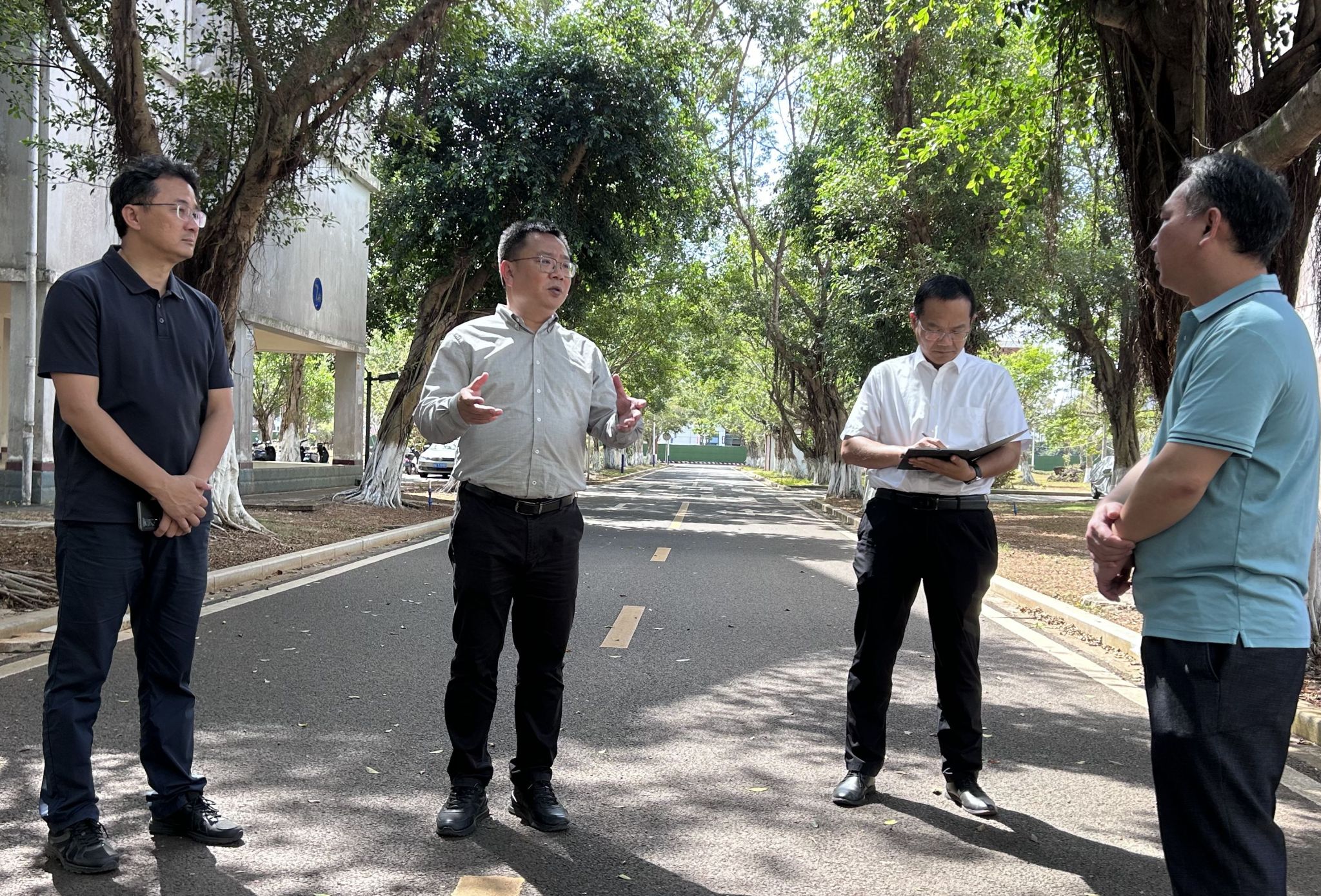 随后,王华来到大学生公园、教师公寓、东门等区域,实地查看校园环境整治工作。他强调,要以实施校园文化建设三年行动计划为抓手,持续推进校园环境从基础保障向精细化、特色化、品质化转变。要科学规划绿化景观,提升美化层次,让校园四季有景、移步换景;全面清理卫生死角,保持环境整洁。通过系统整治、精细管理,着力营造整洁优美、和谐有序的育人环境,让校园既有“颜值”更有“气质”,不断提升师生的获得感和幸福感。