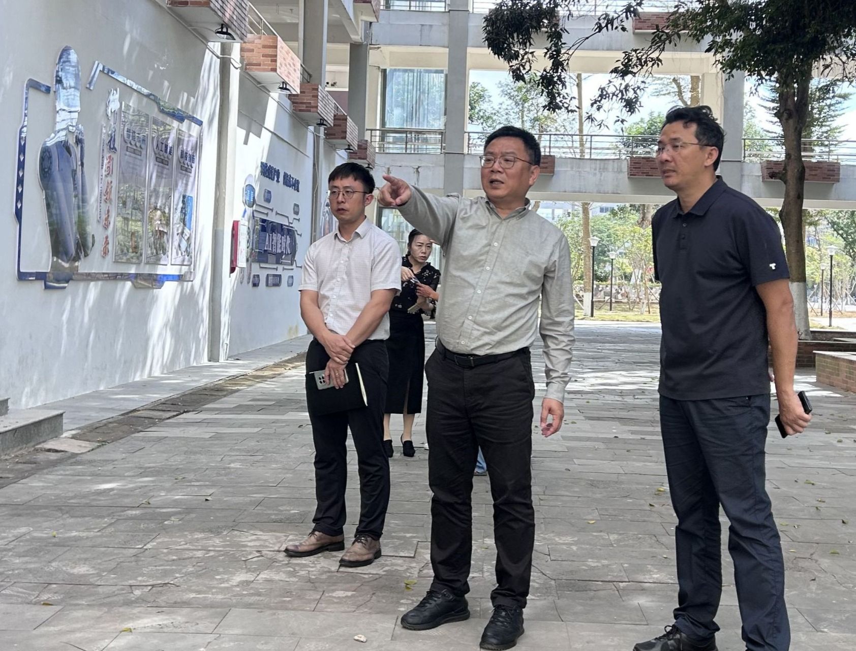 2026年2月26日,在新学期开学前夕,海南经贸职业技术学院党委书记王华以“四不两直”的方式,来到融媒体中心、智能计算中心项目及廉洁文化传播示范中心建设现场,实地调研项目建设进展,检查水电安全运行情况,并对校园环境整治工作进行现场指导。党委委员、副校长张修志陪同调研。