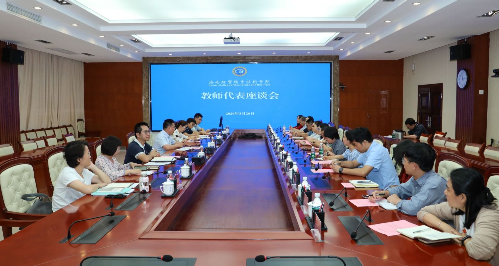 2026年3月26日,海南经贸职业技术学院党委副书记、校长崔昌华主持召开教师代表座谈会,广泛听取一线教师意见建议,凝聚育人共识、汇聚发展合力。
