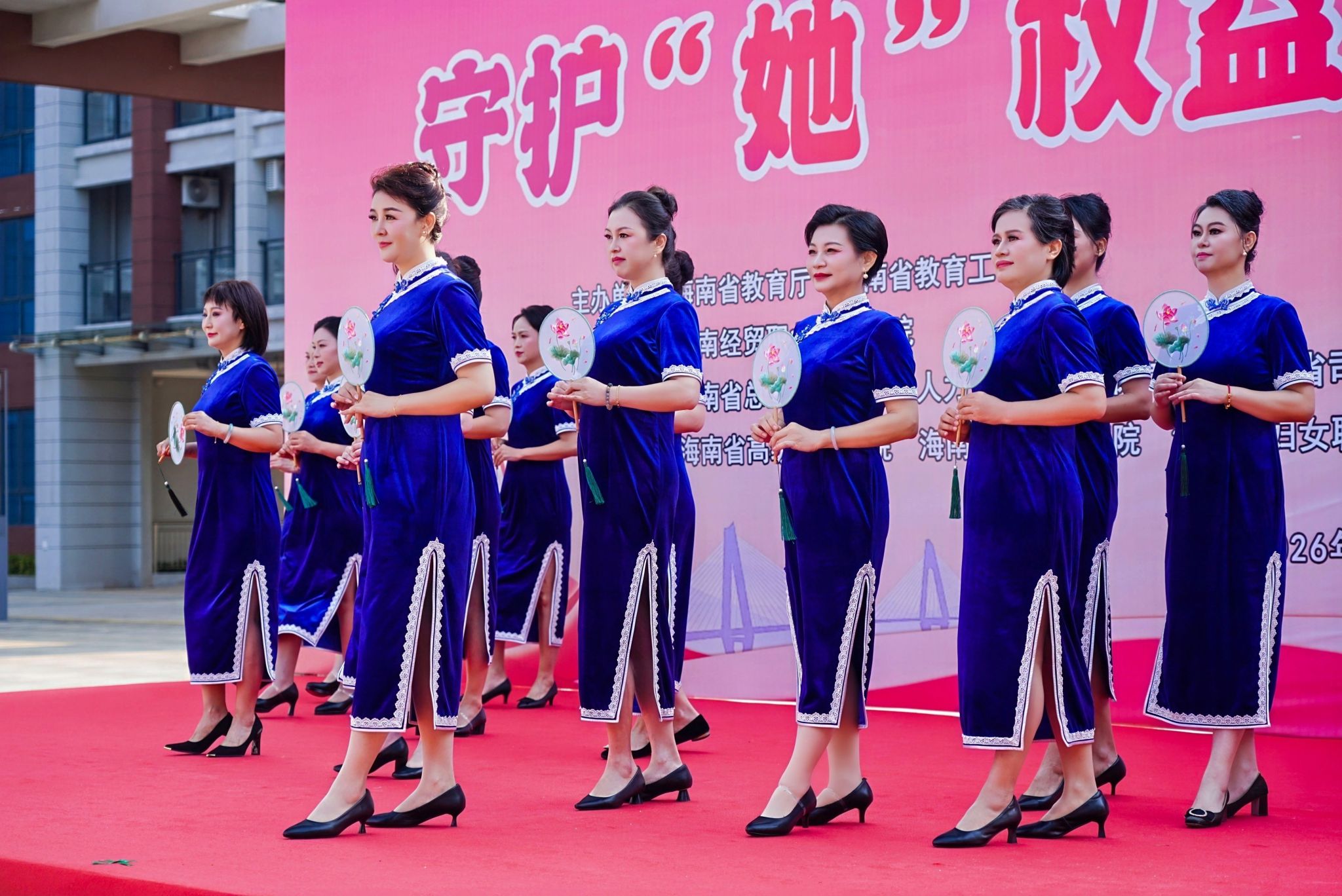 3月31日,“守护‘她’权益,自贸绽芳华”2026年海南省教育系统女职工普法宣传进校园活动在海南经贸职业技术学院举行。海南师范大学、琼台师范学院、海口经济学院等9所学校近200名女教职工代表齐聚现场,共学法治知识、共展巾帼风采。省委教育工作委员会委员,省教育厅党组成员、副厅长,省教育工会主席邢孔政,省教育工会常务副主席林洪珊,海南经贸职业技术学院党委书记王华,党委委员、副校长张修志出席活动。
