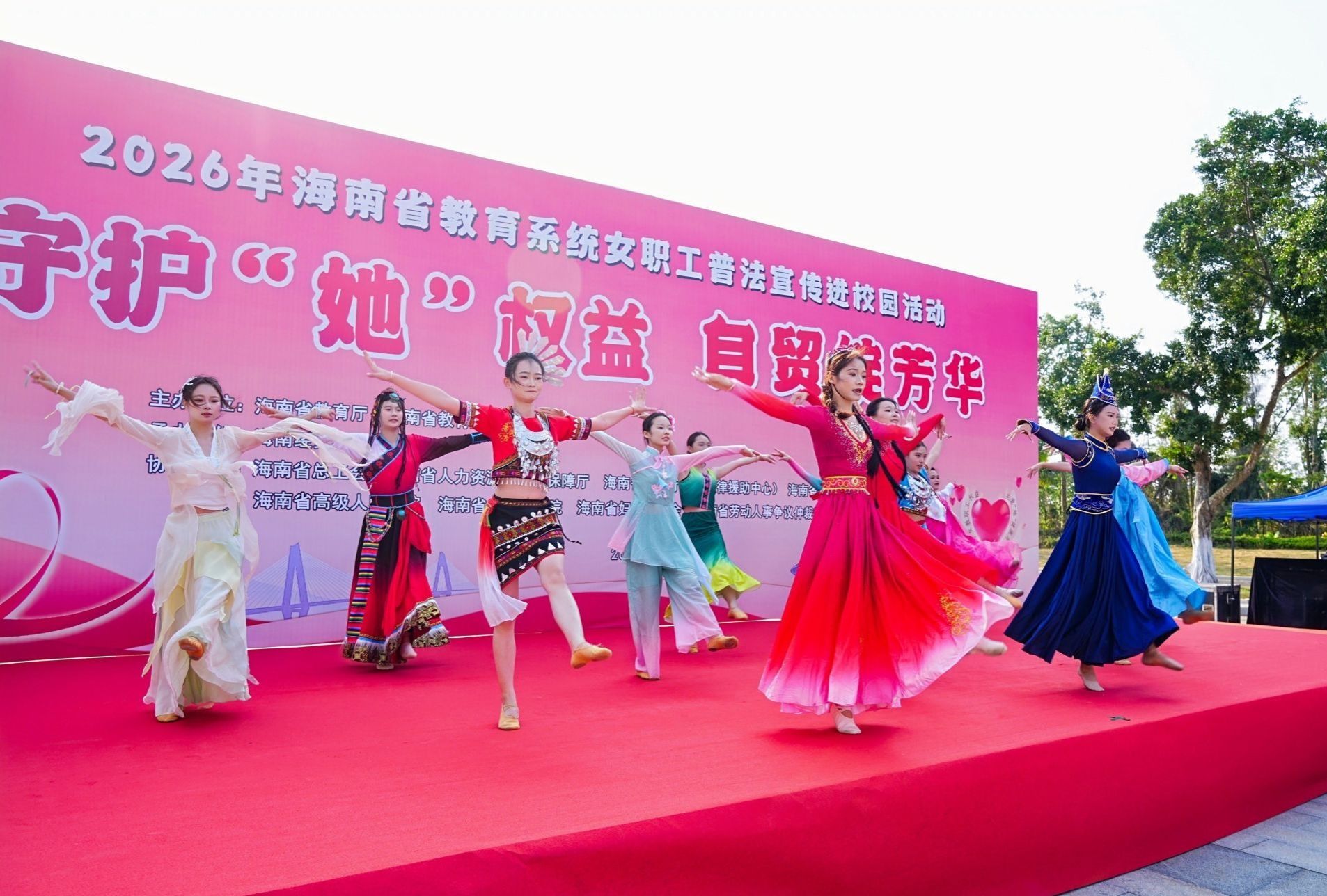 活动现场,海南经贸职业技术学院艺术团带来舞蹈《美丽中国》节目,海南师范大学女教职工带来《师韵芳华》表演,充分展现了教育系统女教职工昂扬向上的精神风貌。穿插进行的普法有奖问答环节,以趣味形式将《妇女权益保障法》《反家庭暴力法》《劳动合同法》等法律知识设计成选择题,调动了现场女教职工的参与热情。