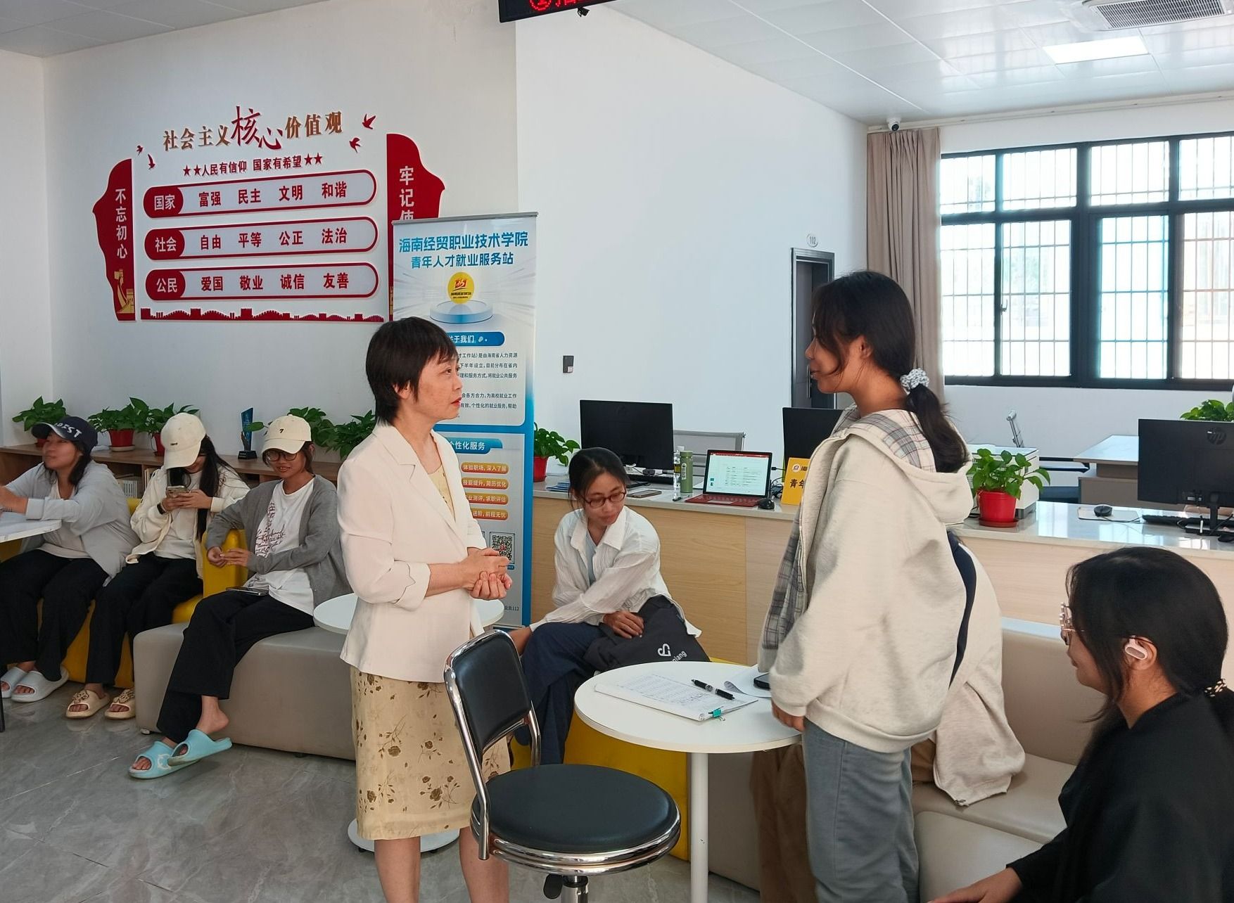 学校精心组建了一支专业过硬、经验丰富的导师团队。文燕、王琳、李菁、康晓亭、林德滋等五位省级职业导师、人力资源专家和企业资深管理者轮流到校,围绕职业规划、简历打磨、面试技巧、求职心态等学生最关心的问题,为同学们提供一对一、面对面的精准指导。服务采取定点、定时、定人方式,在青年人才就业服务站开设专门窗口,提前公布排班,方便学生合理安排时间前来咨询。不少同学带着简历和求职困惑到场,与导师深入交流,在针对性指导下理清思路、提升技能。