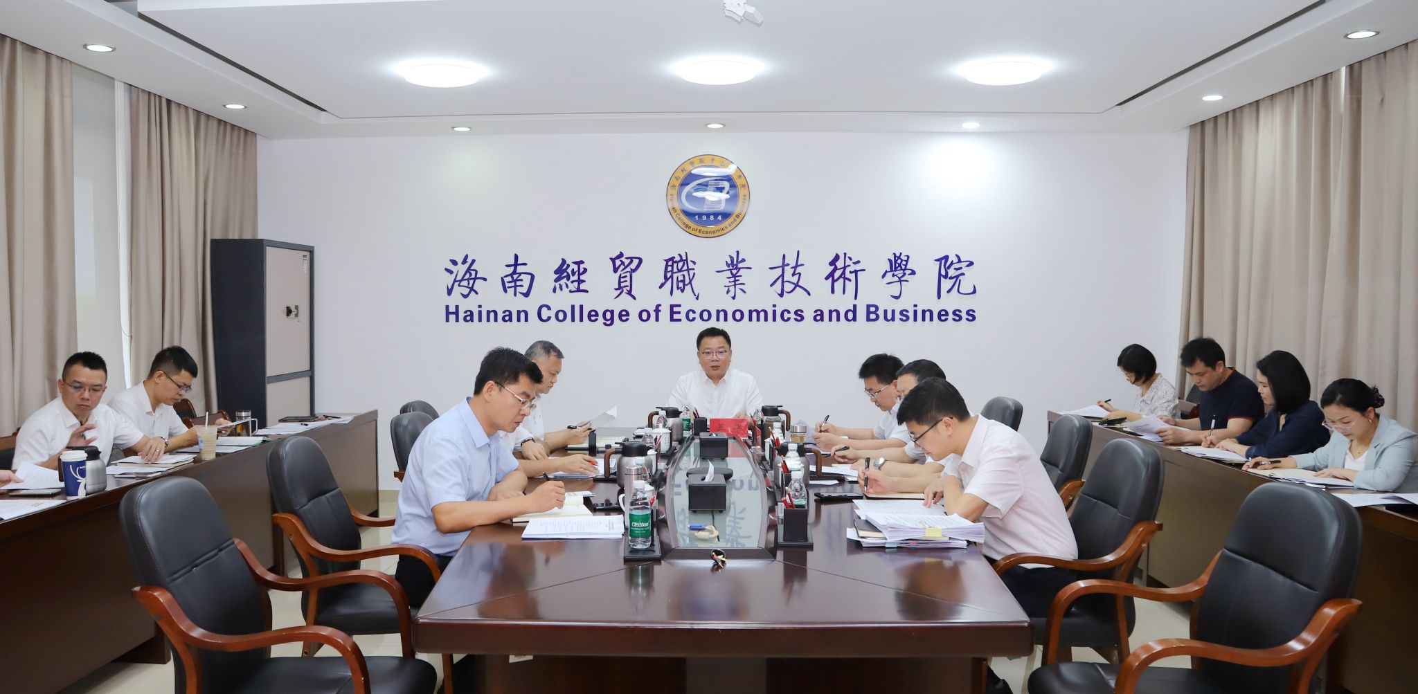 2026年4月16日,海南经贸职业技术学院召开党委理论学习中心组(扩大)学习会,深入学习贯彻习近平总书记在河北雄安新区考察时的重要讲话精神和《树立和践行正确政绩观》重要文章,深化认识、突出重点、狠抓落实,推动树立和践行正确政绩观学习教育走深走实。学校党委班子成员出席会议,年轻党员干部代表列席会议。党委书记王华主持会议。