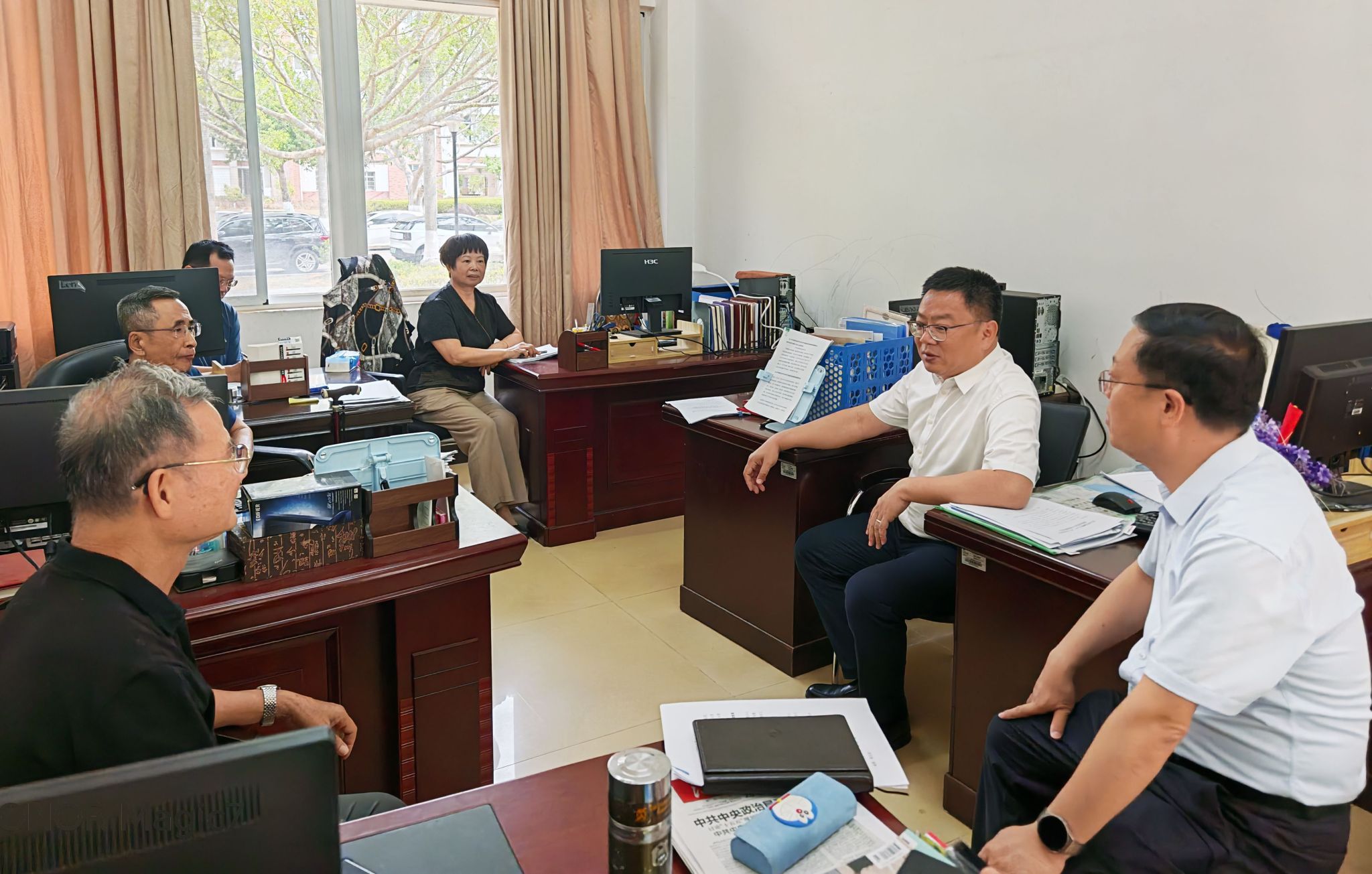 王华亲切询问了在场几位老同志的家庭与身体状况。在认真听取关工委常务副主任黄慧娟关于“五好”关工委申报工作进展及当前存在突出问题的汇报后,王华对学校关工委近年来在推动关心下一代工作中所付出的努力和取得的成绩表示充分肯定。他指出,学校党委将全力支持“五好”关工委申报工作,并要求有关部门负责同志积极协助,确保申报工作顺利推进。