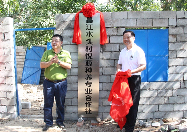黄景贵和吴琼泽为“昌江水头村悦源种养专业合作社”揭牌