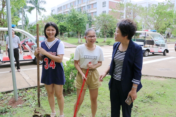在查看校园受灾情况时,曹献坤看到了正在清扫校园的2016级财务管理学院金融学本科班学生。“寝室里受灾了吗”“有没有给家里打电话”,她亲切地询问大家。当听到同学们说一切都好时,她高兴地对学校领导说:“受灾的严重程度与灾前的准备工作是成反比的,同学们都很好,说明学校工作很到位”。
