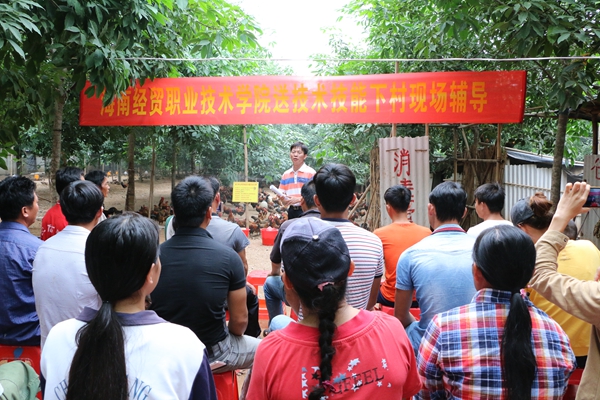 水头村霸王山鸡养殖合作社是海经贸开展的产业扶贫项目之一。学校邀请了昌江县畜牧局专家张琼文到现场,就如何做好霸王山鸡的防病防疫工作,向参加合作社的村民们开展技术技能指导,并对大家在养殖过程中遇到的困难和问题进行解答,受到村民的一致好评。