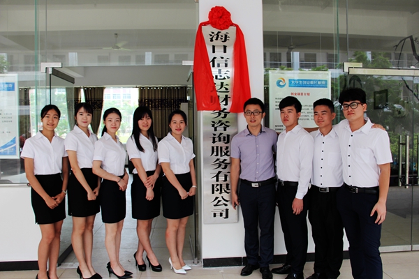此次揭牌成立的大学生创业孵化基地位于第二教学楼,面积约360平方米,目前已入驻7个创业团队,海口信志达财务咨询服务有限公司就是其中之一。该公司由财务管理学院光明会计班13、14、15届的16位同学众筹注册成立,依托财务管理学院雄厚的师资力量,主要从事代理各类中小型企业的记账业务、代理工商登记、代理纳税申报以及各类培训、业务咨询等业务,是学校依托专业创新培养财会人才的新探索。