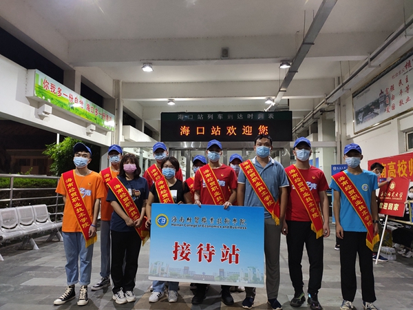 2020年5月18日至19日,海南经贸职业技术学院2020年春季学期第三批返校学生陆续从全国各地抵达海口。在学校团委的协调组织下,75名学生志愿者和20名辅导员分成11个小组,在美兰国际机场、火车站、秀英港、南港、新海港等5个交通站点设置接待工作站,迎接1900多名省外非毕业班学生。