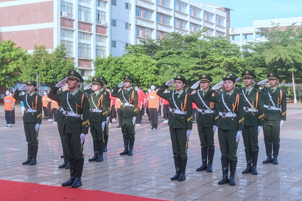 5月25日,海南经贸职业技术学院举行“青春做脊梁 战疫勇担当”2020年春季学期主题升国旗仪式。张继友、黄景贵、陈修焕、万力维、符史杭、李莉、胡友波等全体党政领导出席仪式。