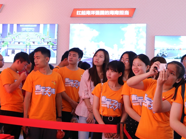 在参观过程中,师生党员们仔细观看展览内容,认真听取讲解,不时驻足凝视,拍照讨论。在序厅区,大家通过视频,聆听习近平总书记对海南寄予的谆谆嘱托;在改革开放馆,穿过用大量图片和文字串起的“时光廊道”,回顾这30年来海南所经历的大事件;在生态建设馆,了解海南通过立法先行、创新制度、革新理念、严谨规划、严管重罚等手段多管齐下,不断加强生态文明建设的历程;在国际旅游岛馆,身临其境感受海南青山绿水、碧海蓝天的自然之美;在社会民生馆,通过一系列图片和老物件,体验海南多年来的民生变化。