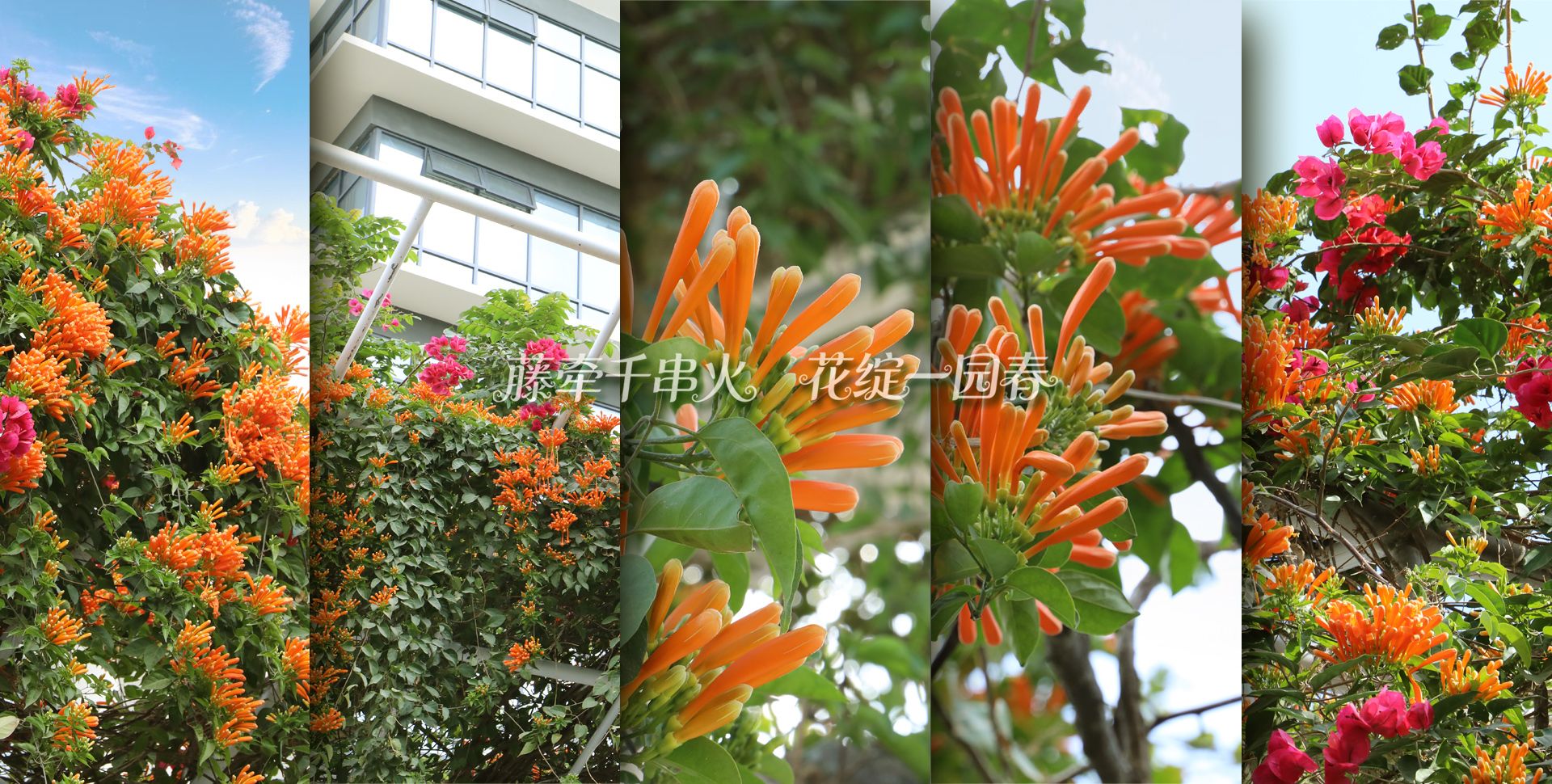 藤牵千串火 花绽一园春