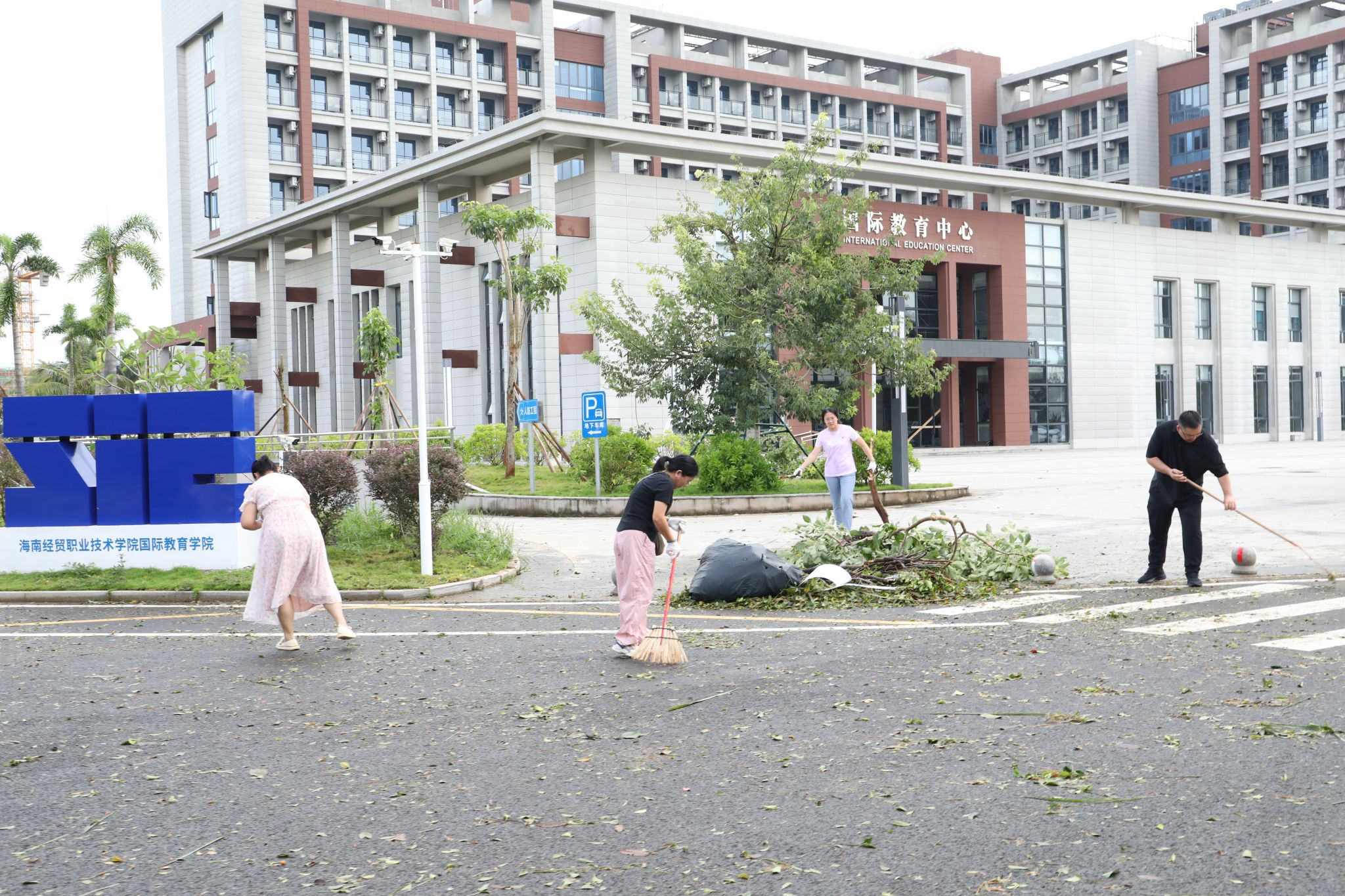 2025年10月5日,强台风“麦德姆”携狂风暴雨从文昌近海擦过,海口正处台风眼壁,风雨交加,威力最盛。海南经贸职业技术学院在防风防汛中严阵以待,齐心协力开展校园灾后恢复工作,用爱与责任为师生们筑起了一道坚实的“安全网”。