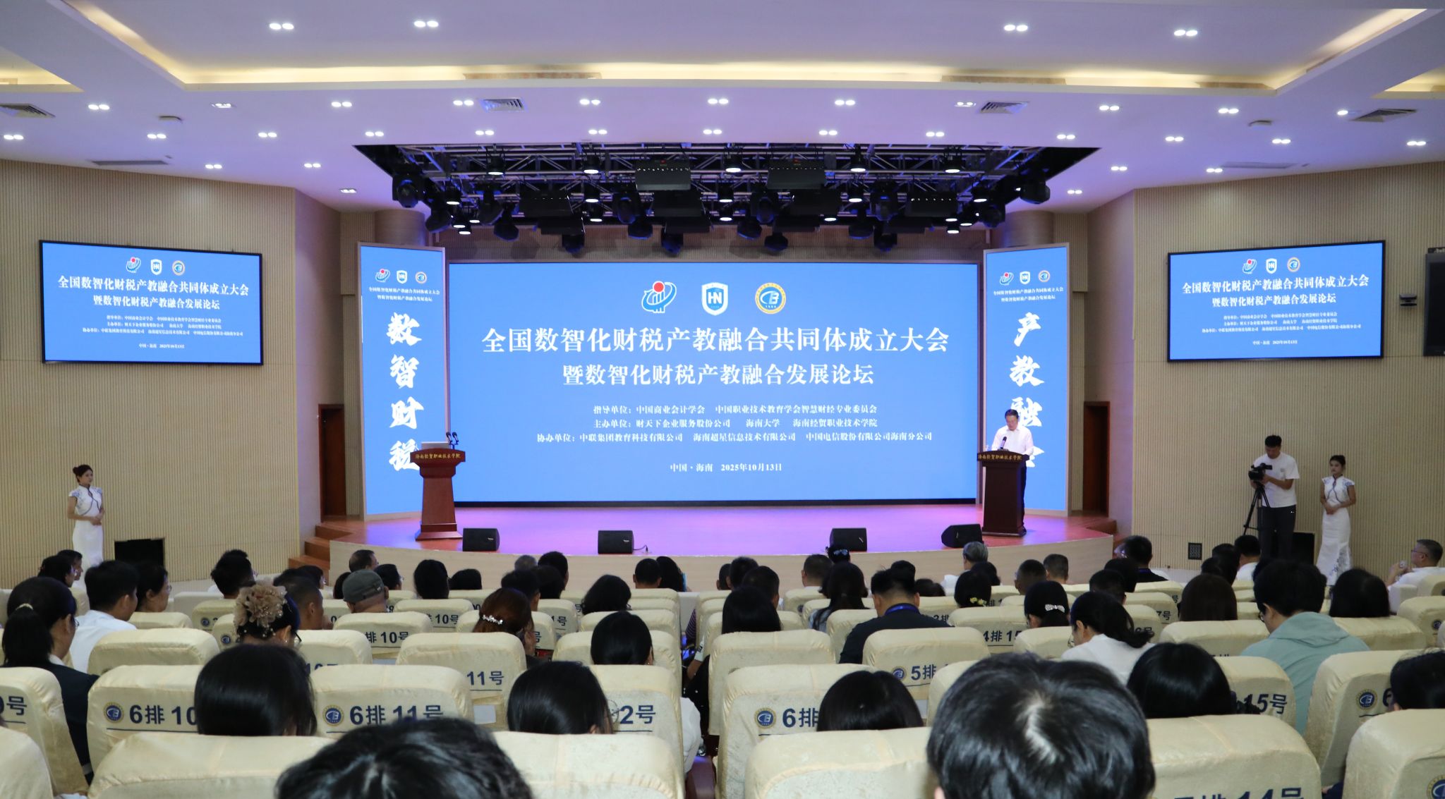 2025年10月13日,全国数智化财税产教融合共同体成立大会暨数智化财税产教融合发展论坛在海南经贸职业技术学院举行。来自全国各地的普通高校、职业院校、企事业单位、科研院所、行业协会的专家、学者、行业和企业负责人齐聚一堂,共同见证共同体成立,共商高质量发展大计。