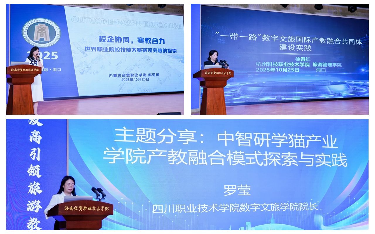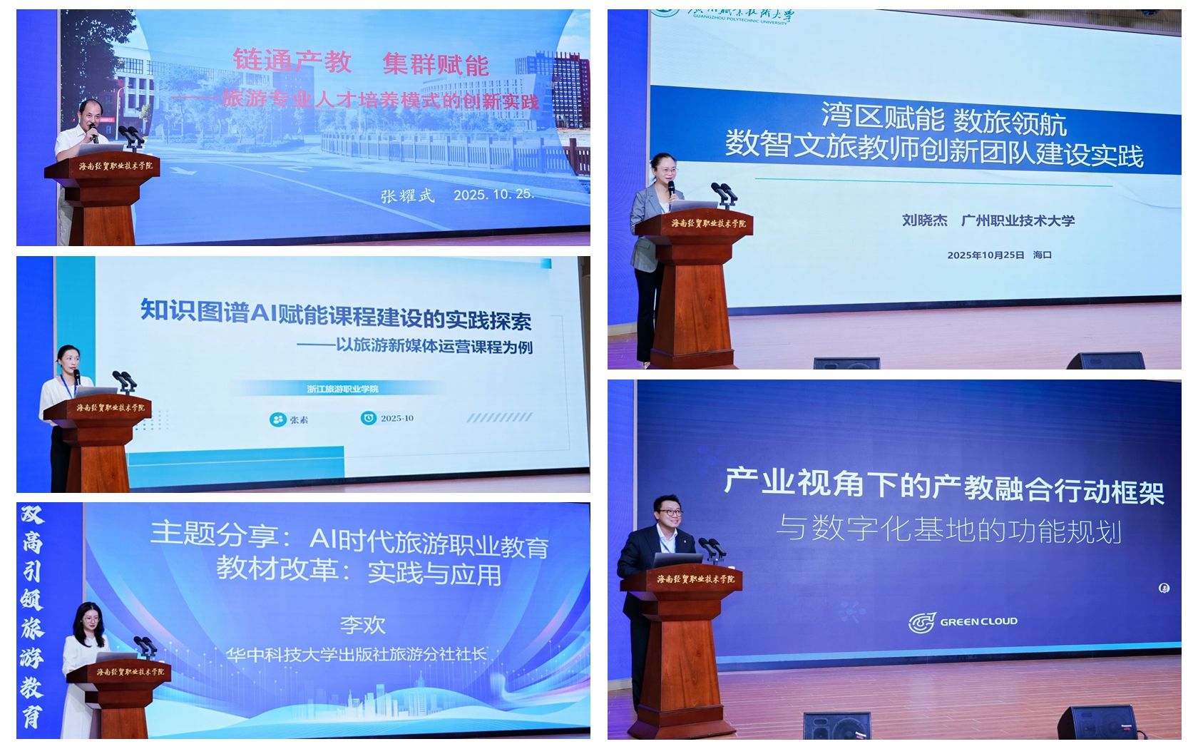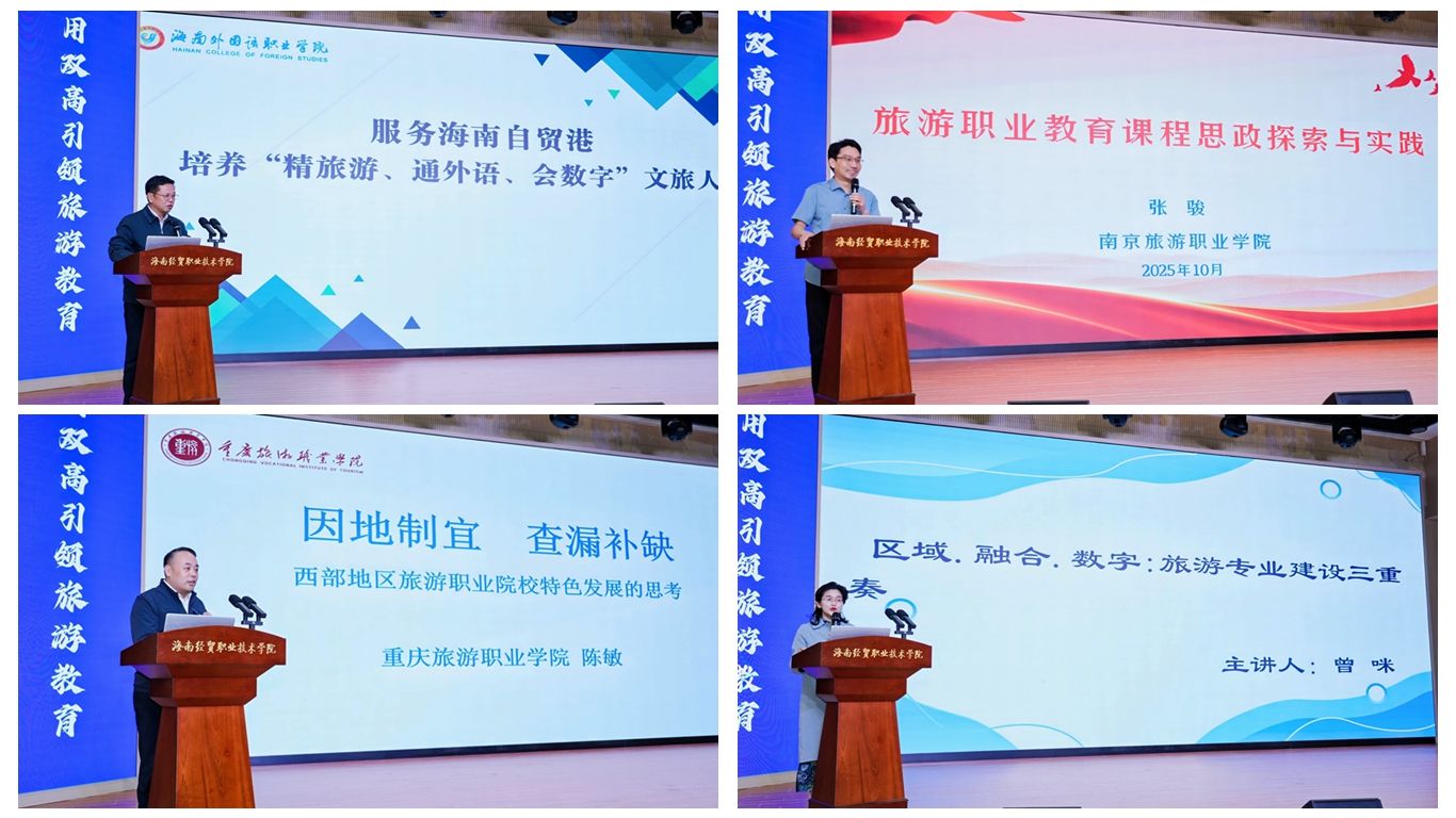 海南经贸职业技术学院、宁夏工商职业技术大学、浙江旅游职业学院、长沙商贸旅游职业技术学院、北京财贸职业学院等院校代表,结合区域发展需求,分享了旅游大类高水平专业群建设的创新路径与实践经验。与会嘉宾还围绕旅游人才培养模式创新、AI赋能课程建设与教材改革、数智化教师团队建设、职业教育数字化基地打造等热点议题展开研讨,共同探索旅游职业教育“五金”建设的有效路径。