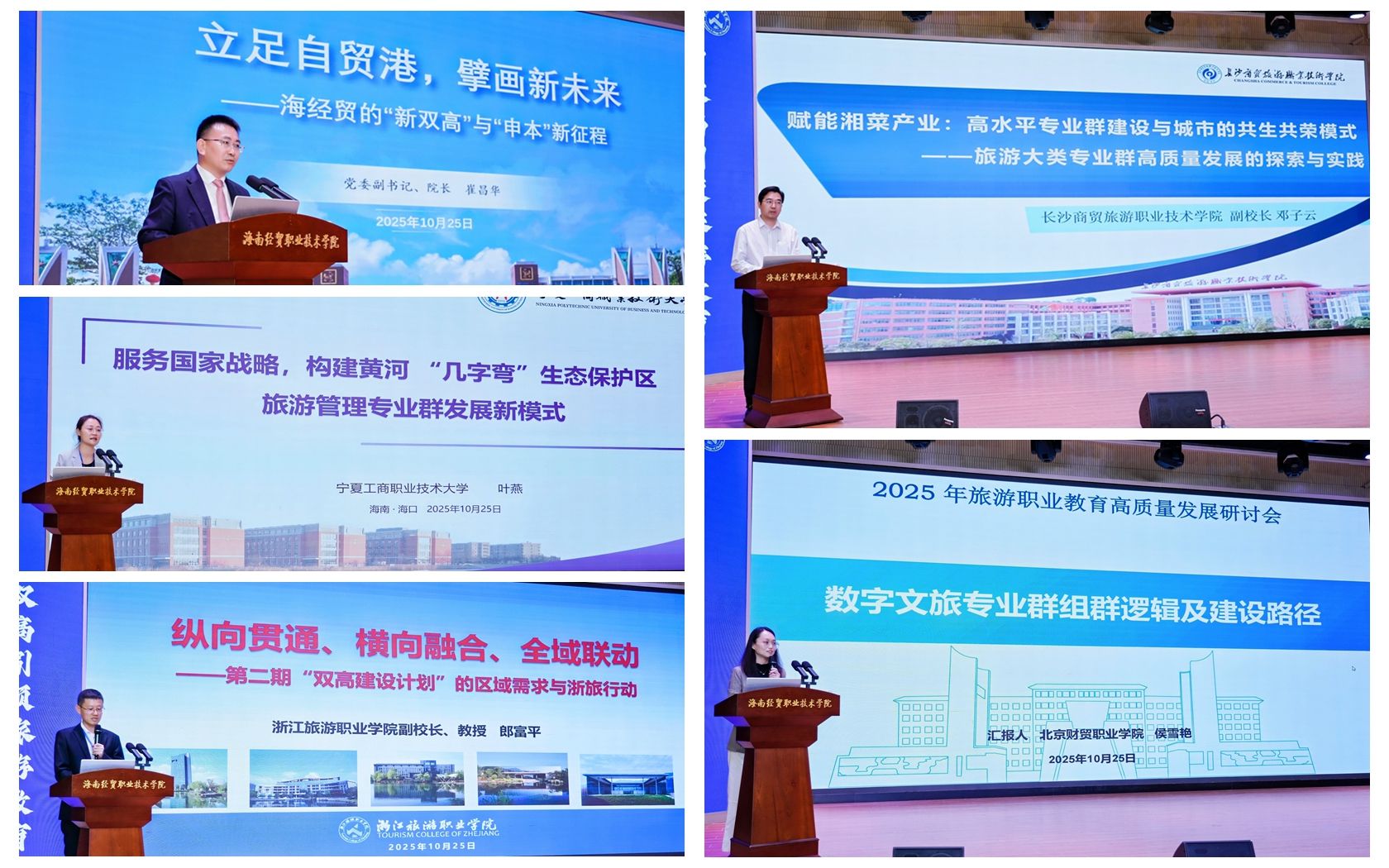 2025年10月25日,旅游职业教育高质量发展研讨会暨旅游大类高水平专业群建设交流会在海南经贸职业技术学院成功举办。本次会议由全国旅游职业教育教学指导委员会景区与休闲类专业委员会、海南经贸职业技术学院、浙江旅游职业学院、国家级职业教育“双师型”教师培训基地联合主办,汇聚了200余名来自全国各地的专家学者、行业精英及院校教师代表,共同围绕旅游职业教育的改革与创新展开深度交流。