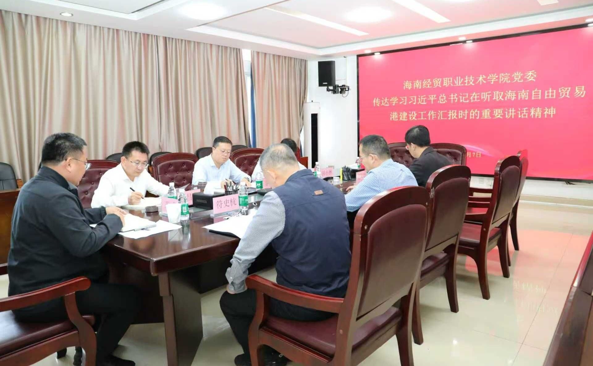 2025年11月7日,海南经贸职业技术学院党委召开会议,专题学习习近平总书记在听取海南自由贸易港建设工作汇报时的重要讲话精神和八届省委常委会(扩大)会议精神。党委书记王华主持会议,党委班子成员出席会议。