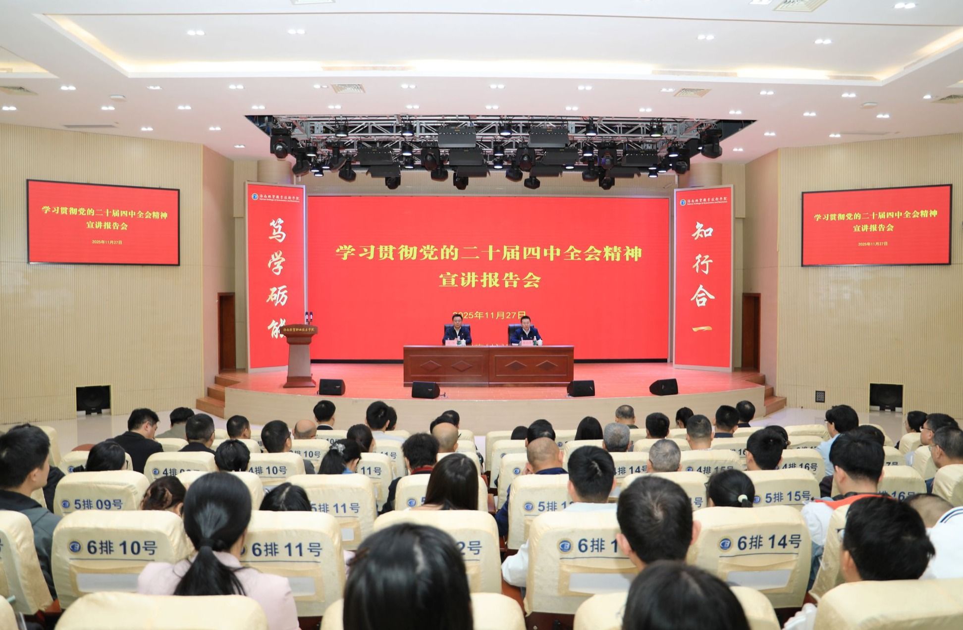 2025年11月27日,学习贯彻党的二十届四中全会精神宣讲团成员、海南经贸职业技术学院党委书记王华为师生宣讲党的二十届四中全会精神,要求全校党员干部和广大师生深入学习领会、全面准确把握全会精神的重大意义和核心要义,把智慧和力量凝聚到落实全会确定的各项目标任务和推动学校高质量发展上来。学校党委副书记、校长崔昌华主持会议。