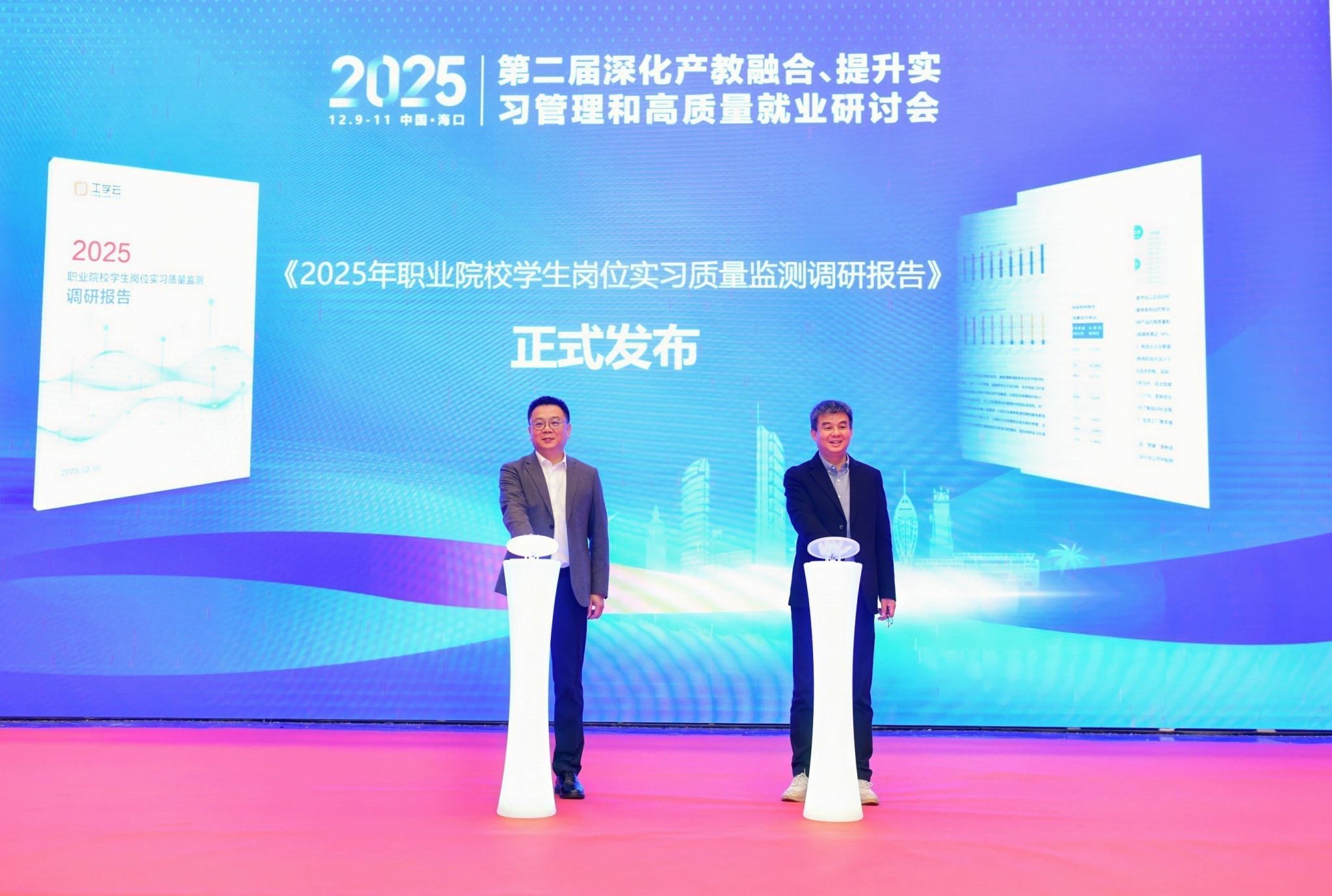 会上,海南经贸职业技术学院与掌淘科技联合发布《2025年职业院校学生岗位实习质量监测调研报告》,为实习管理与质量评价提供了重要数据支撑。