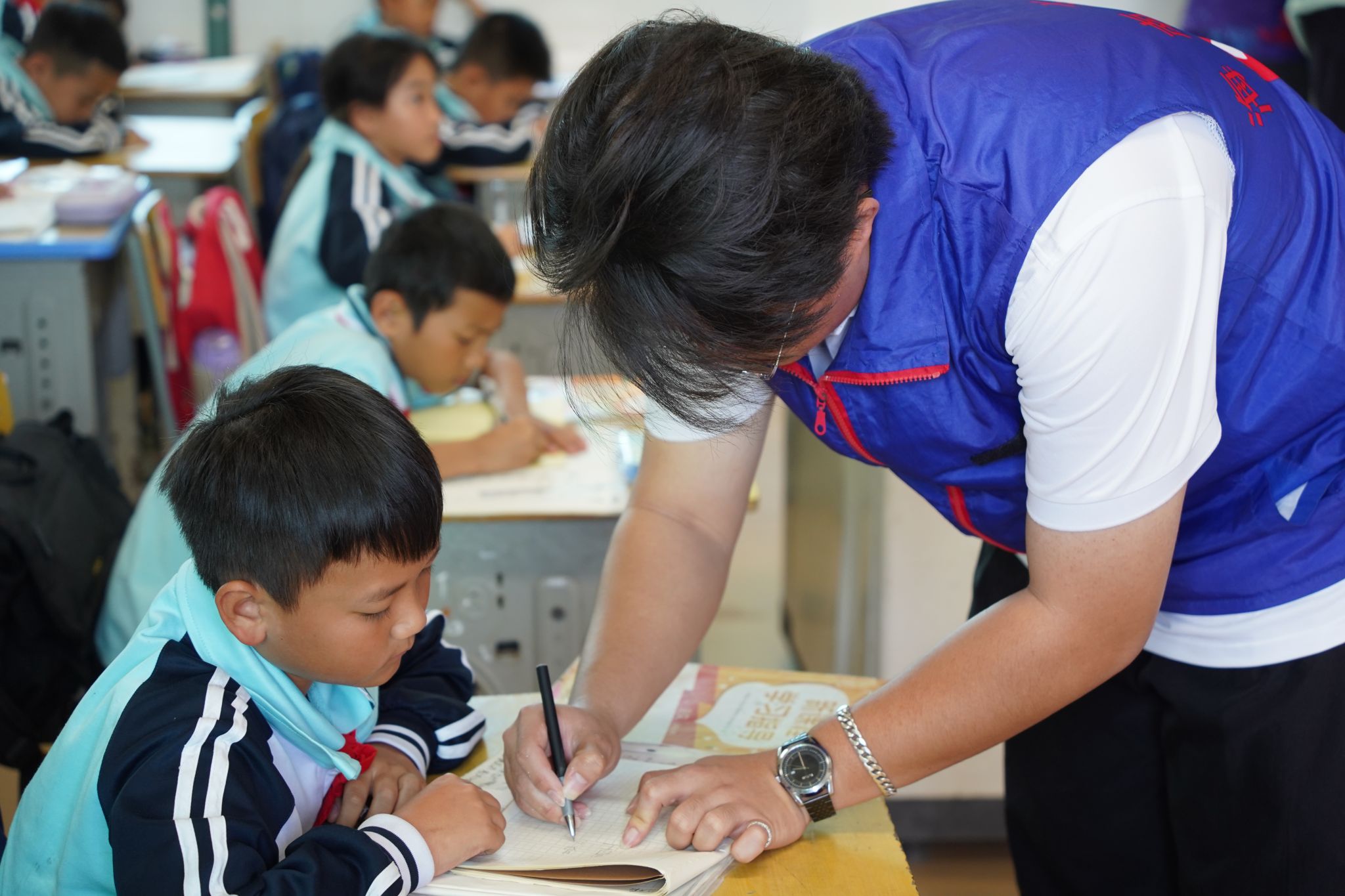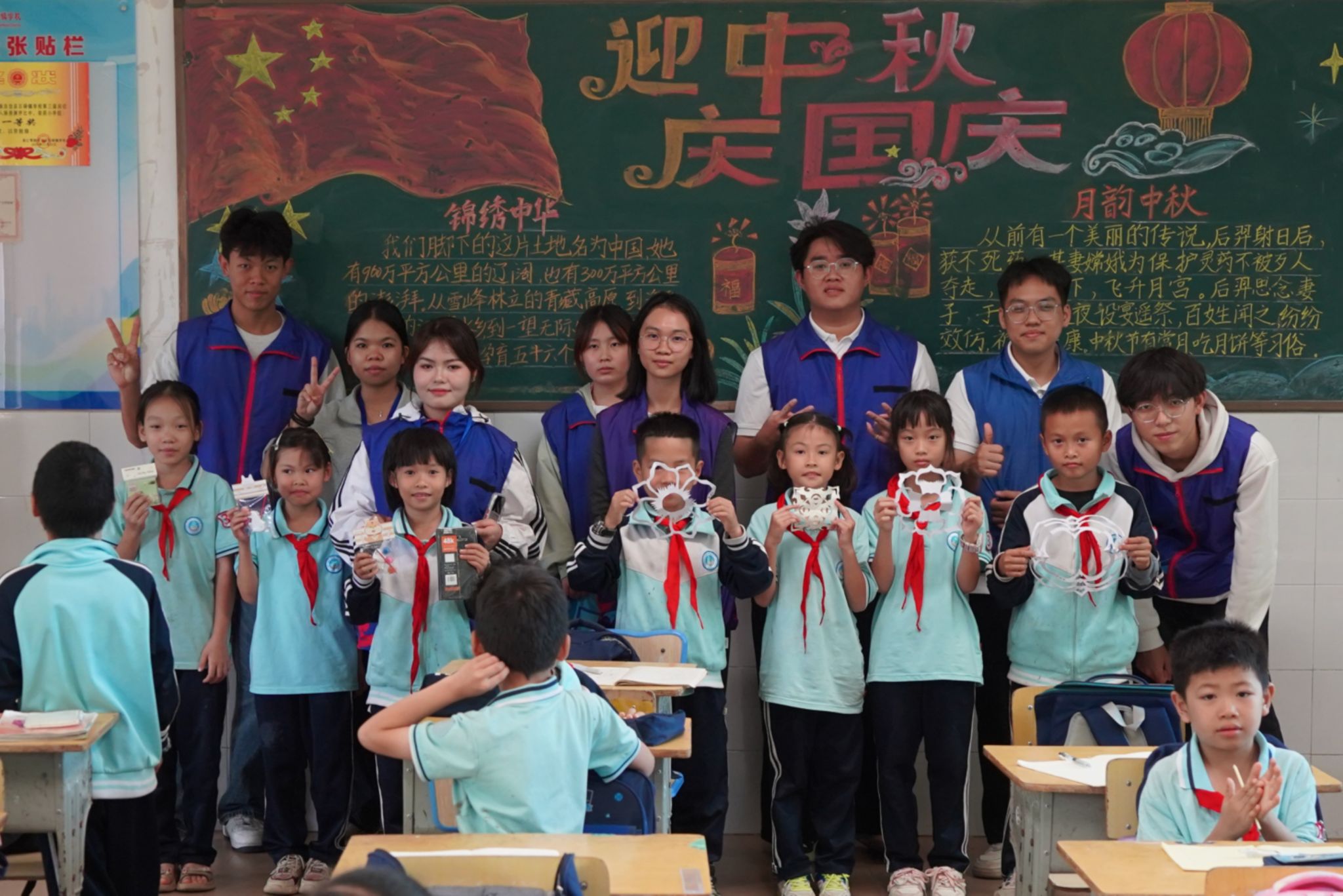 志愿者分别就英语课堂、书读课堂、心理课堂和美术课堂展开支教活动。英语小组的志愿者们以风趣幽默的语言进行授课,将课堂化身成为了欢乐的知识海洋。书读小组进行了剪纸实践教学,一幅幅图案精美的剪纸和层次鲜明的“立体字”浮现出来,孩子们纷纷学习效仿。心理小组的“心理导师们”通过一场场课堂小游戏及趣味问答,带领孩子们敞开心扉,成为自己情绪的主人。美术小组的志愿者们用一支支色彩缤纷的画笔,带领孩子们描绘出了独属他们的童真世界。