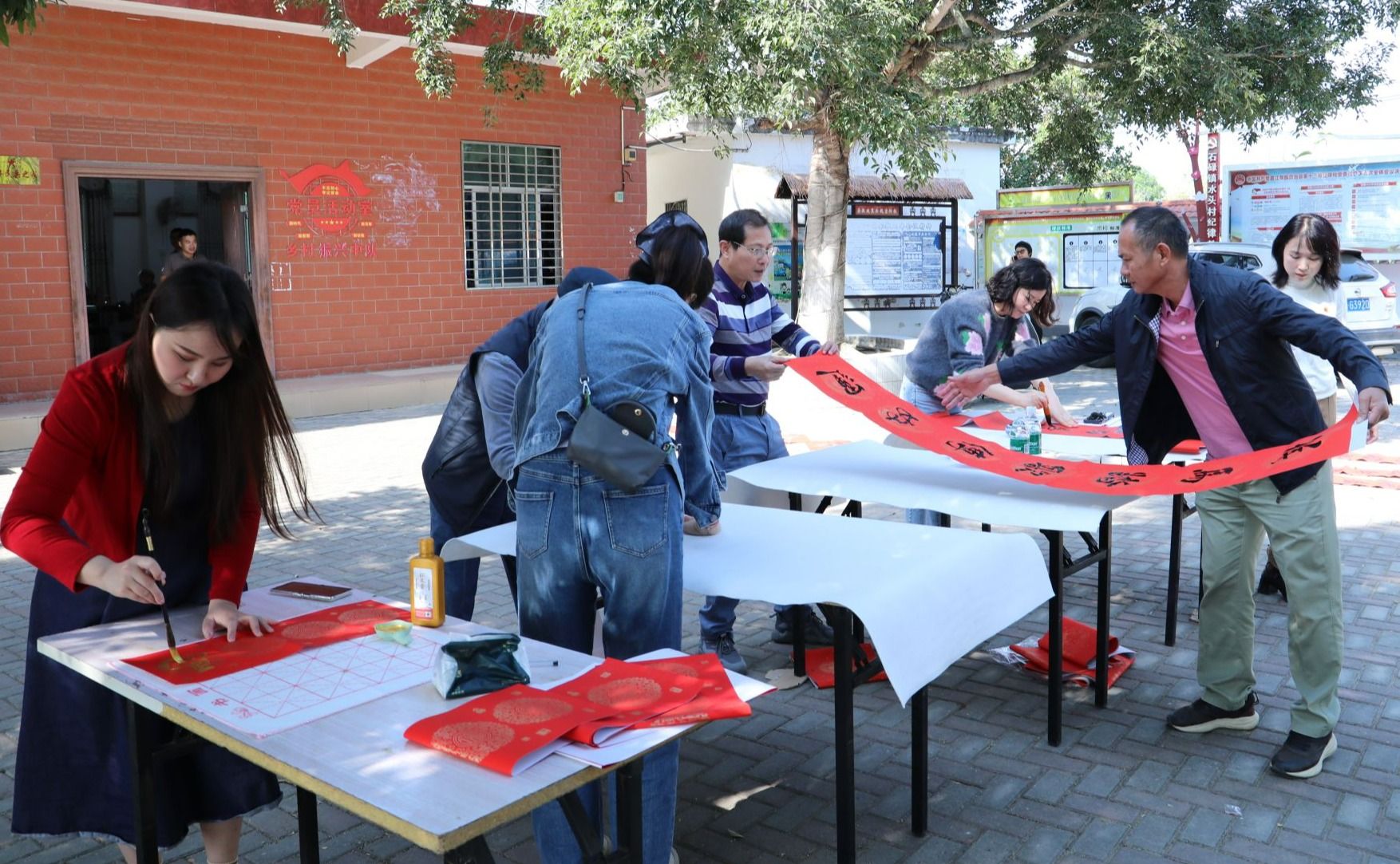 学校教师为村民们写春联