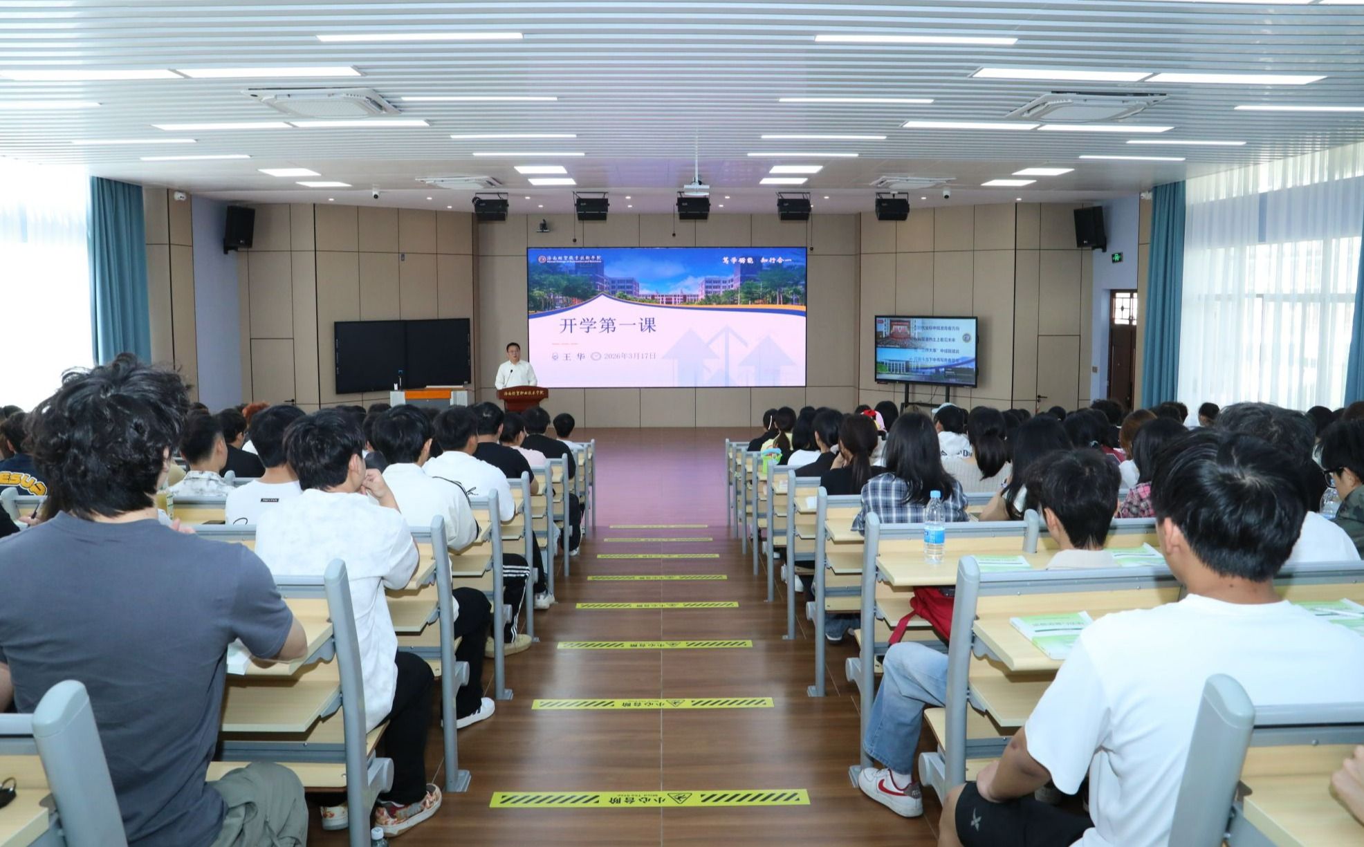 春回大地,万物竞发。2026年3月17日上午10时,海南经贸职业技术学院第一教学楼238教室课程气氛活跃。学校党委书记王华为同学们讲授了一堂兼具思想深度、时代温度与专业厚度的“开学第一课”,引导青年学子将个人成长融入国家发展、自贸港建设与学校发展大局,明确奋斗方向,锤炼过硬本领。