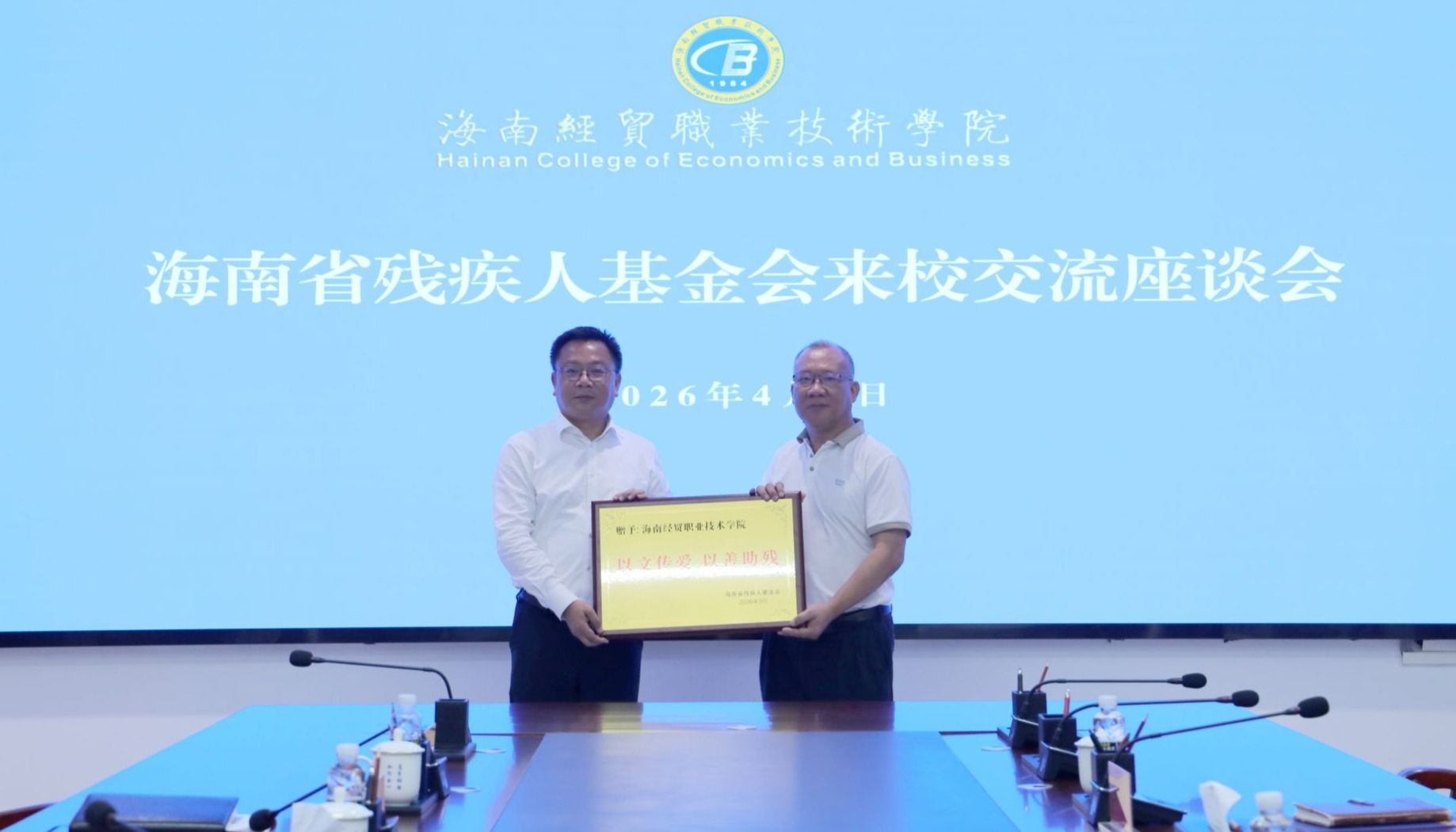 会上,海南省残疾人基金会授予海南经贸职业技术学院“以文传爱 以善助残”牌匾,以此感谢学校在公益助残领域做出的积极贡献,也标志着双方合作进入新阶段。