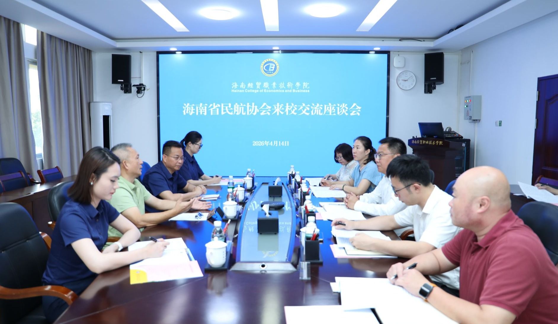 2026年4月14日,海南民用航空运输协会秘书长、海南省民航职业学校校长符何,原海航机场集团有限公司总裁杨许强一行来到海南经贸职业技术学院,就合作共建航空航天现代产业学院进行交流。海南经贸职业技术学院党委书记王华出席座谈会。