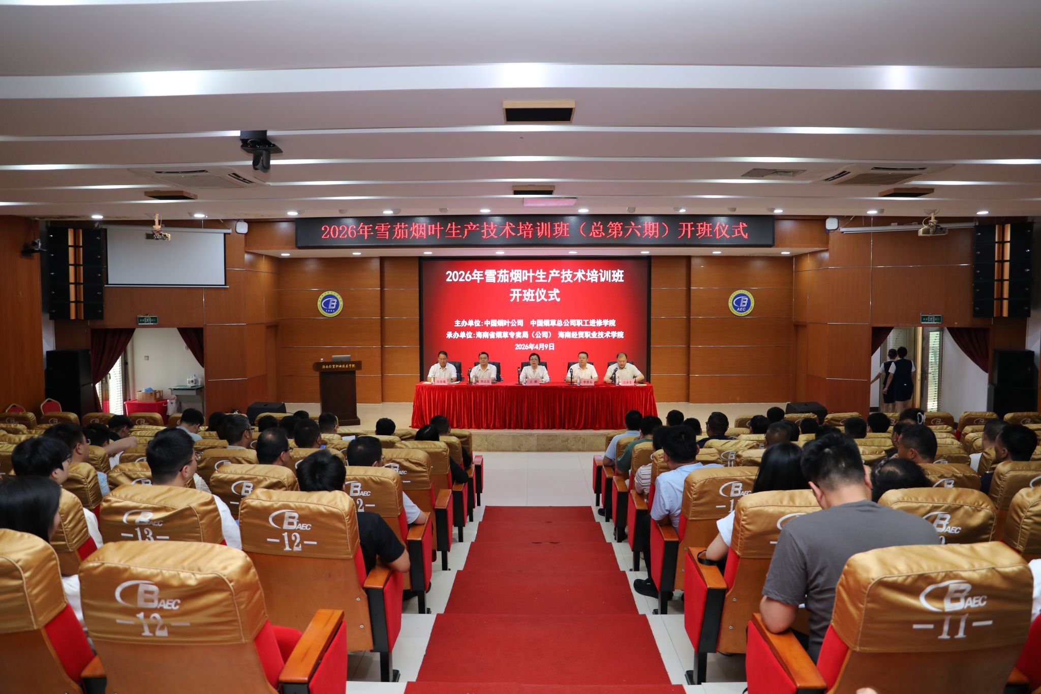 4月8日至17日,2026年雪茄烟叶生产技术培训班在海南经贸职业技术学院举行。来自全国各地的雪茄烟叶生产、管理及技术骨干共计60余人参加了为期十天的集中培训。中国烟草总公司职工进修学院党组成员、副院长王娜,海南经贸职业技术学院党委委员、副校长李厚永,中国烟草总公司海南省公司海口雪茄研究所所长陈志坚、副所长陈德鑫等出席开班式。