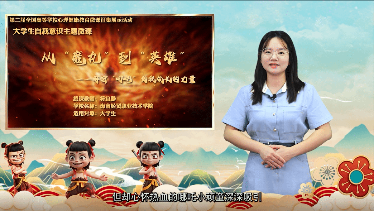 近日,第二届全国高等学校心理健康教育微课征集展示活动遴选结果公示。海南经贸职业技术学院心理中心教师符宜静主讲的微课作品《从“魔丸”到“英雄”——解密哪吒自我成长的力量》成功入选,成为海南省高职院校中唯一入选的作品。