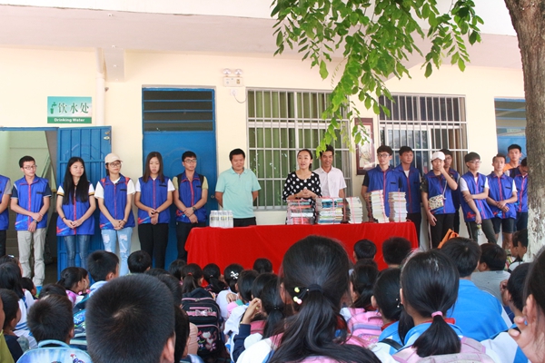 在水头村小学,海经贸志愿者送去了1500余本图书及书柜,并代表学校向小朋友们送上了节日的问候。水头村小学教师代表表示,海经贸师生为大家送来了精神粮食,是为了丰富孩子们的课余生活,是在帮助孩子们用知识改变命运,希望这些书籍能为孩子们打开一扇门,推开一扇窗,开阔眼界,丰富思想,树立梦想。