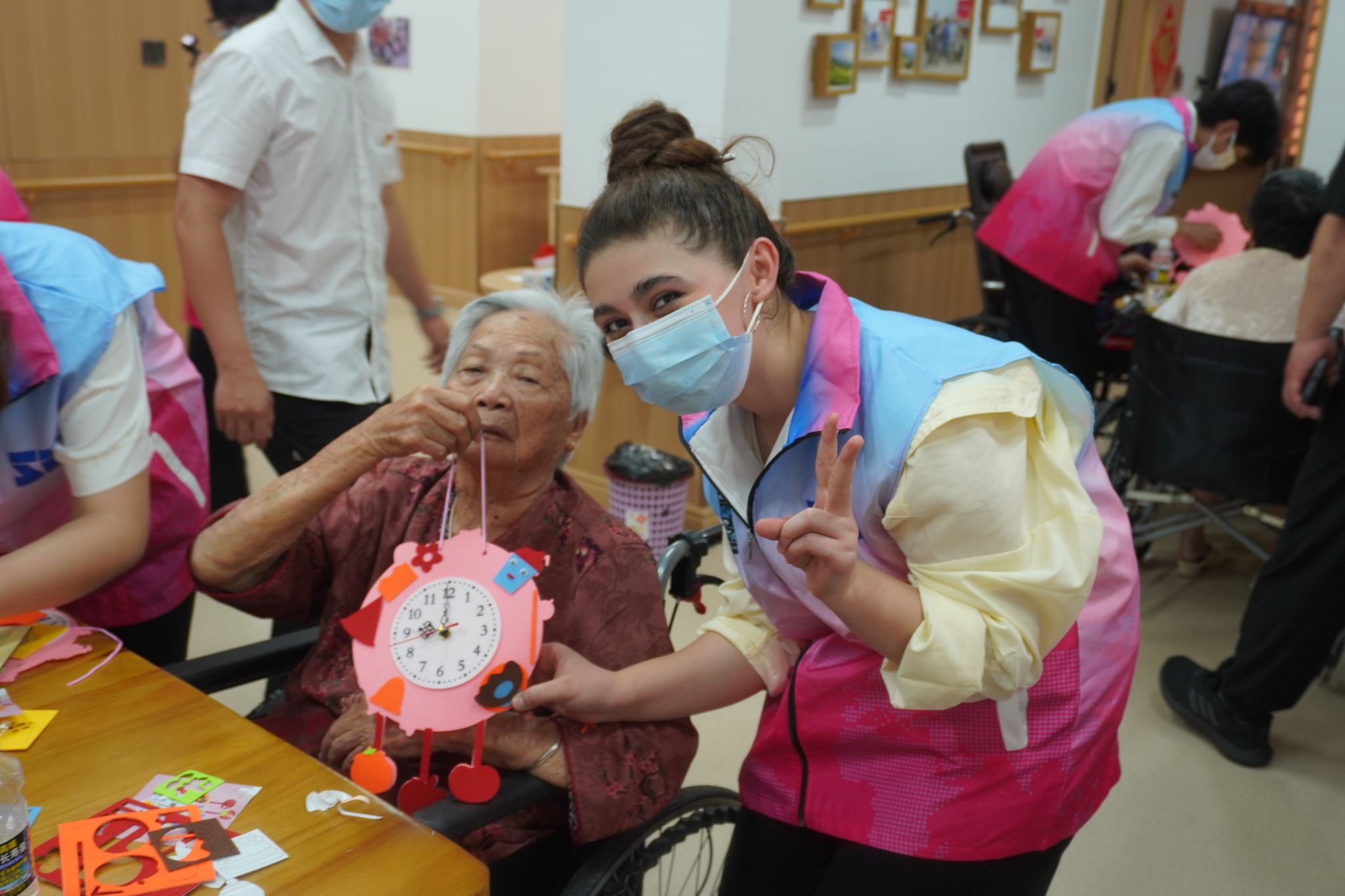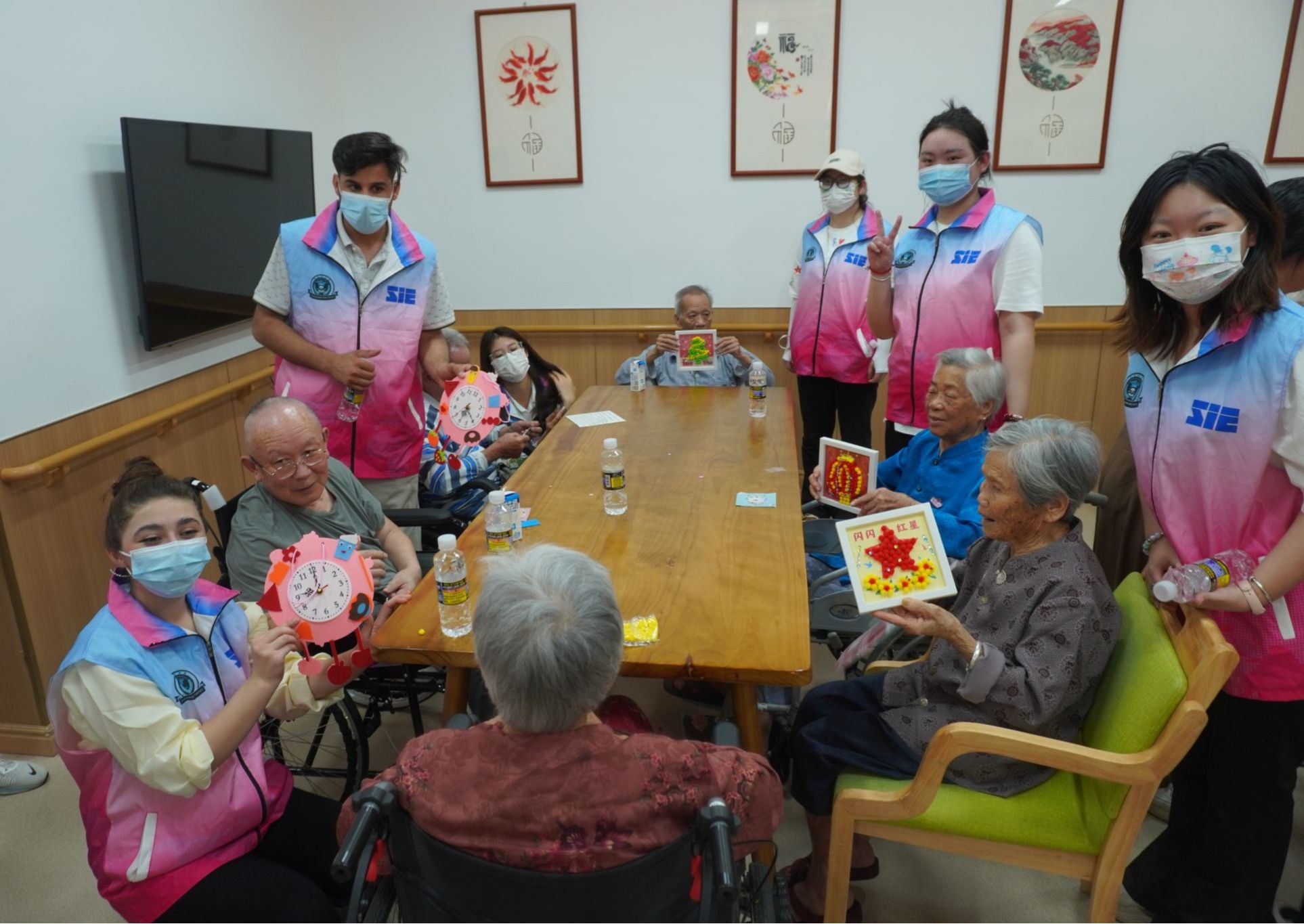 研学活动结束后,师生一行走进养老服务中心,开展“手工暖人心”志愿服务活动,用爱心传递温暖,用行动诠释担当。中外学生志愿者们与老人们围坐在一起,耐心细致地指导老人完成手工拼图,手把手教学、心贴心交流。