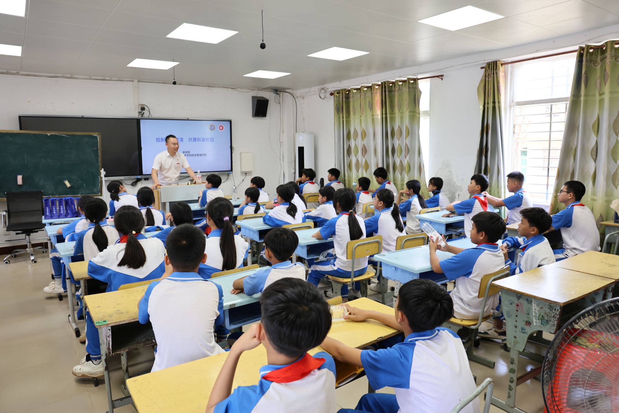 同时,海南省红匠辅导员名师工作室的老师用俗易懂的语言给学生们开展了一场主题为“防范校园欺凌 共建和谐校园”的主题宣讲,讲解了校园欺凌的表现、危害及应对方法,并结合生动案例作了分享,帮助孩子们树立自我保护意识,学会友善相处、理性化解矛盾,为校园安全筑牢思想根基。