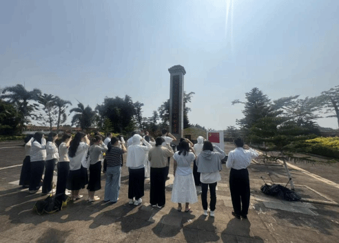 在美亭解放海南战役决战胜利纪念园纪念碑前,全体党员列队肃立,向革命先烈默哀致敬,表达崇高敬意与深切缅怀,随后面向鲜红党旗,庄严宣誓,重温入党誓词。在专业讲解员的引导下,大家认真聆听革命历史讲解,深入了解美亭决战的艰苦历程与重大意义,接受深刻的革命传统教育和精神洗礼。